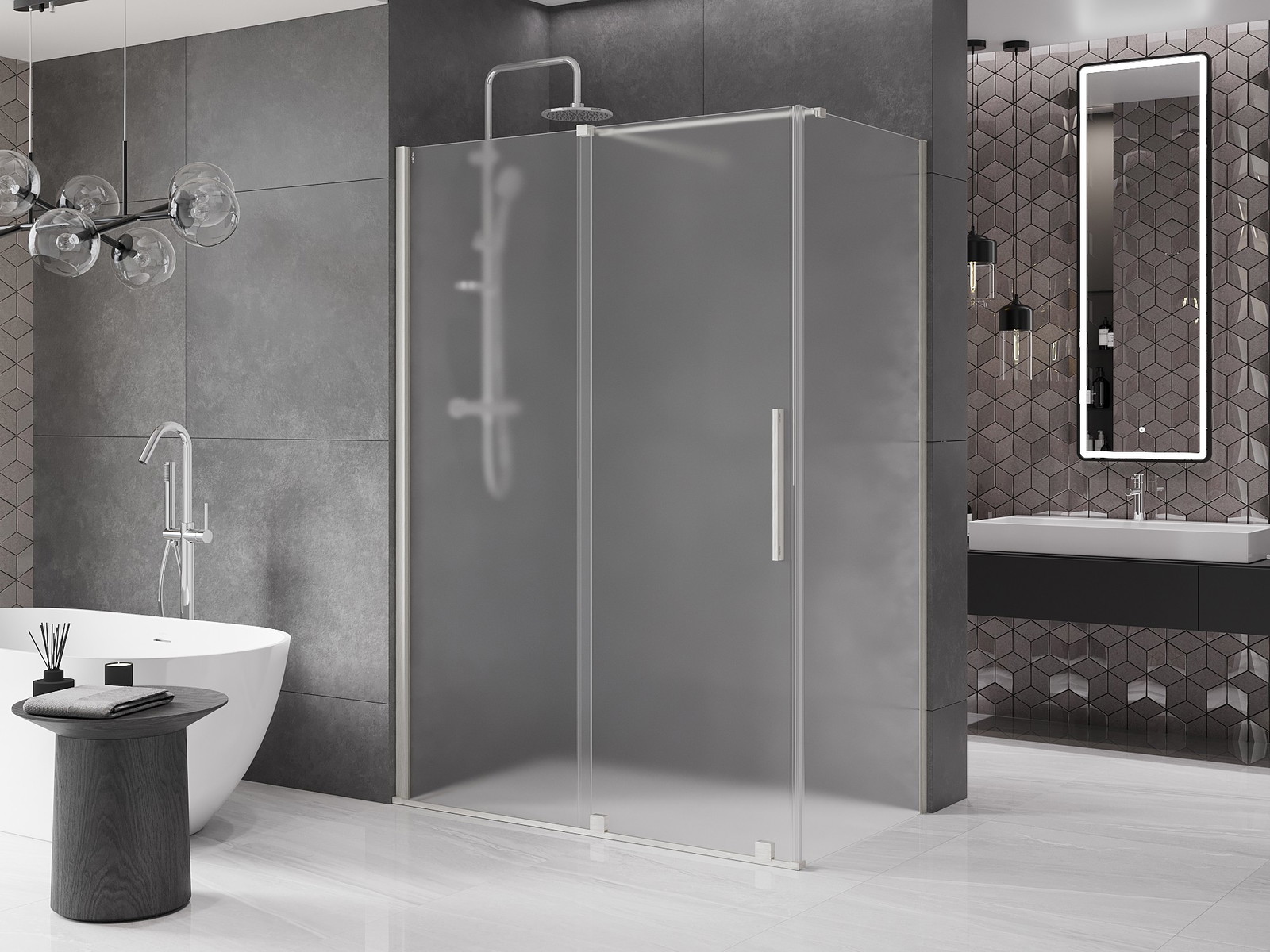 Mexen Velar je moderna tuš kabina dimenzij 140 x 75 cm, izdelana iz kaljenega stekla debeline 8 mm, kar zagotavlja trajnost in varnost. Model je opremljen z drsnimi vrati in univerzalno montažo, kar olajša njegovo namestitev v različnih kopalnicah. Matirano steklo s premazom za lažje čiščenje in brušen nikelj zaključek dodajata eleganco. Kabina ima regulacijo širine in možnost montaže na tuš kadi ali ploščice. Aluminijasti profil in visokokakovostna aluminijasta kolesa zagotavljajo trajnost, komplet tesnil in prag za tesnjenje vrat pa odlično tesnjenje.