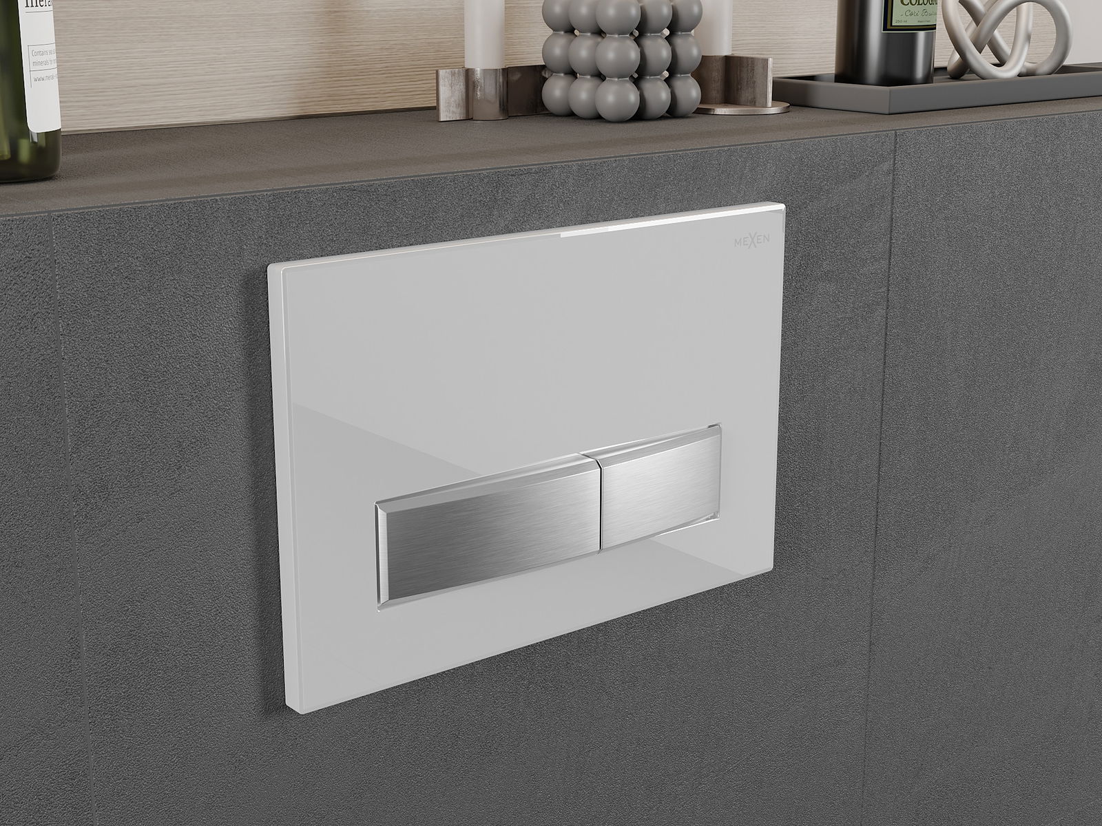 Gumb je namenjen za nadometne okvirje, kjer je mesto montaže na sprednji strani konstrukcije. Takšna postavitev omogoča enostaven dostop in udobno upravljanje splakovanja.