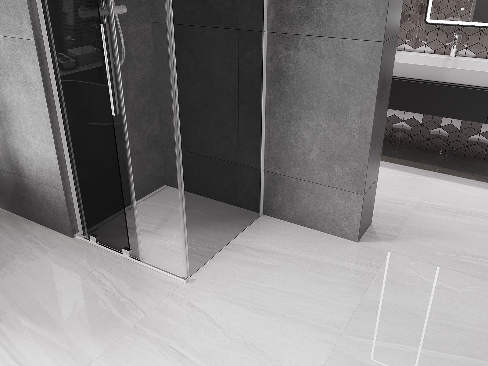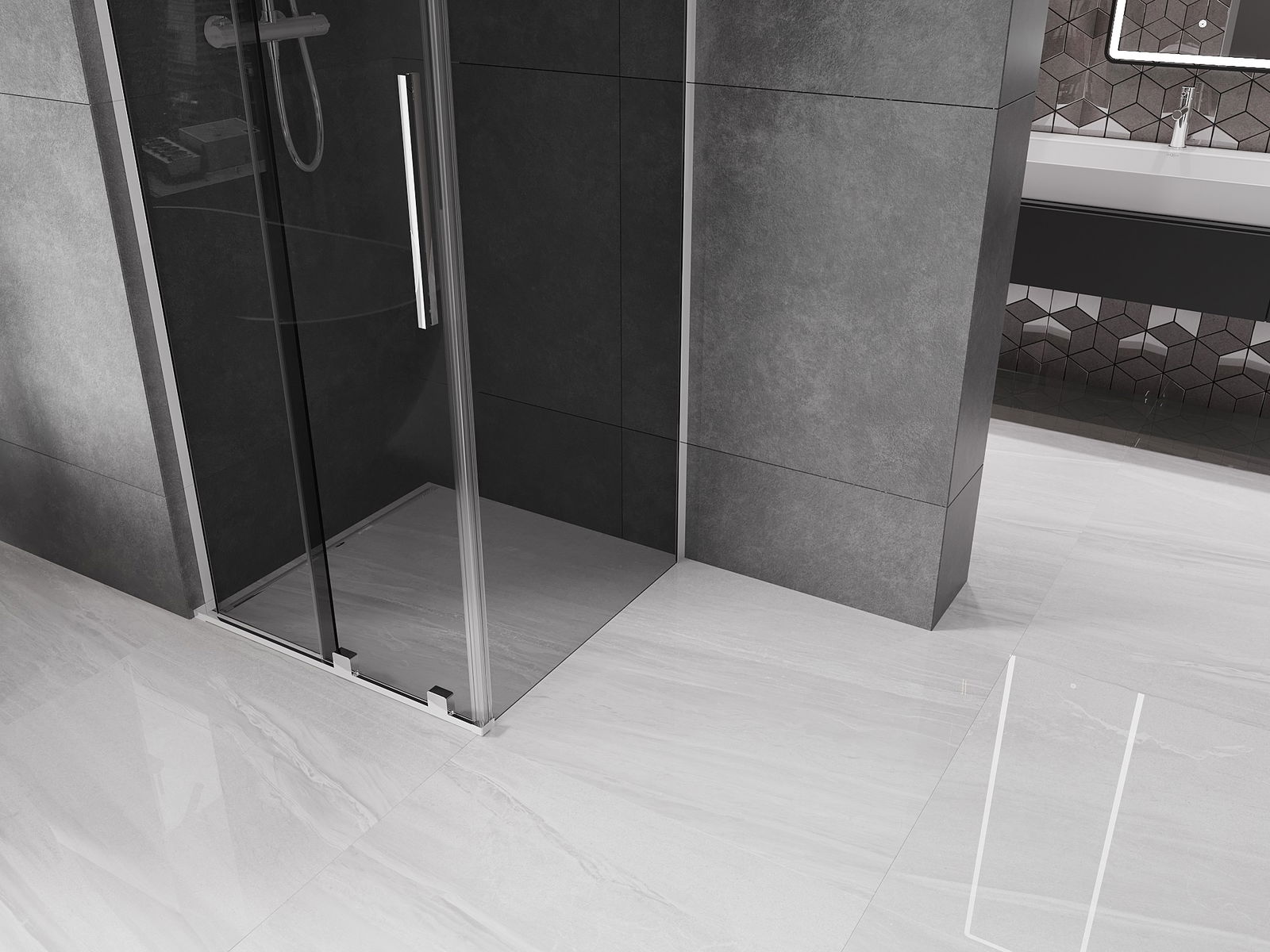 Zahvaljujoč uporabi univerzalnega sistema montaže je mogoče pršne vrata namestiti na desni ali levi strani, odvisno od potreb. Zahvaljujoč temu lahko z lahkoto oblikujete prho, prilagojeno prostoru v kopalnici.