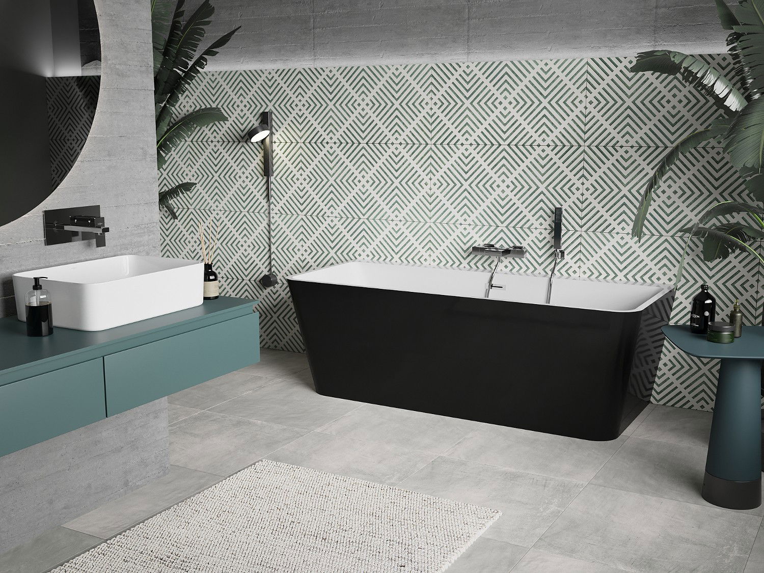 Mexen Volta samostoječa kad ob steni 170 x 75 cm, bela/črna, kromirani preliv - 51131707575-01