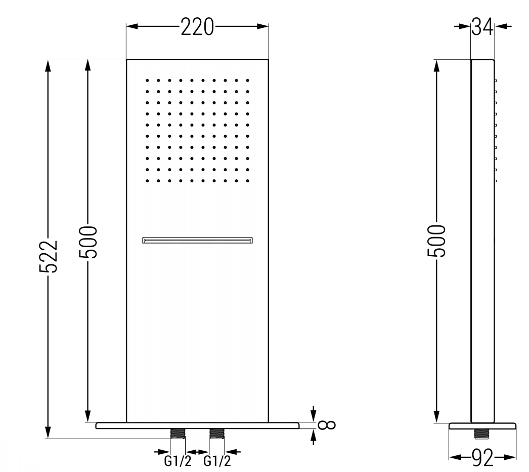 Dežna prha ima le 8 mm debeline, kar ji daje izjemno vitki videz. Tanka konstrukcija se idealno prilega moderni notranjosti kopalnice in daje občutek lahkotnosti. Odlična izbira za minimalistične ureditve.