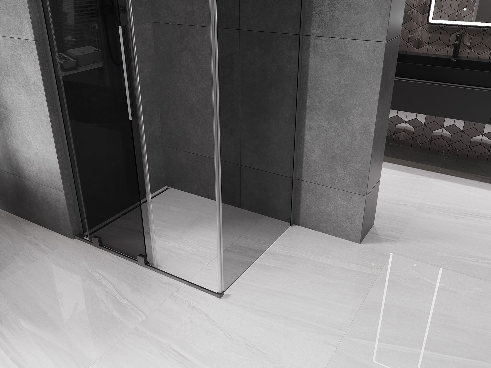 Zahvaljujoč uporabi univerzalnega sistema montaže je mogoče pršne vrata namestiti na desni ali levi strani, odvisno od potreb. Zahvaljujoč temu lahko z lahkoto oblikujete prho, prilagojeno prostoru v kopalnici.