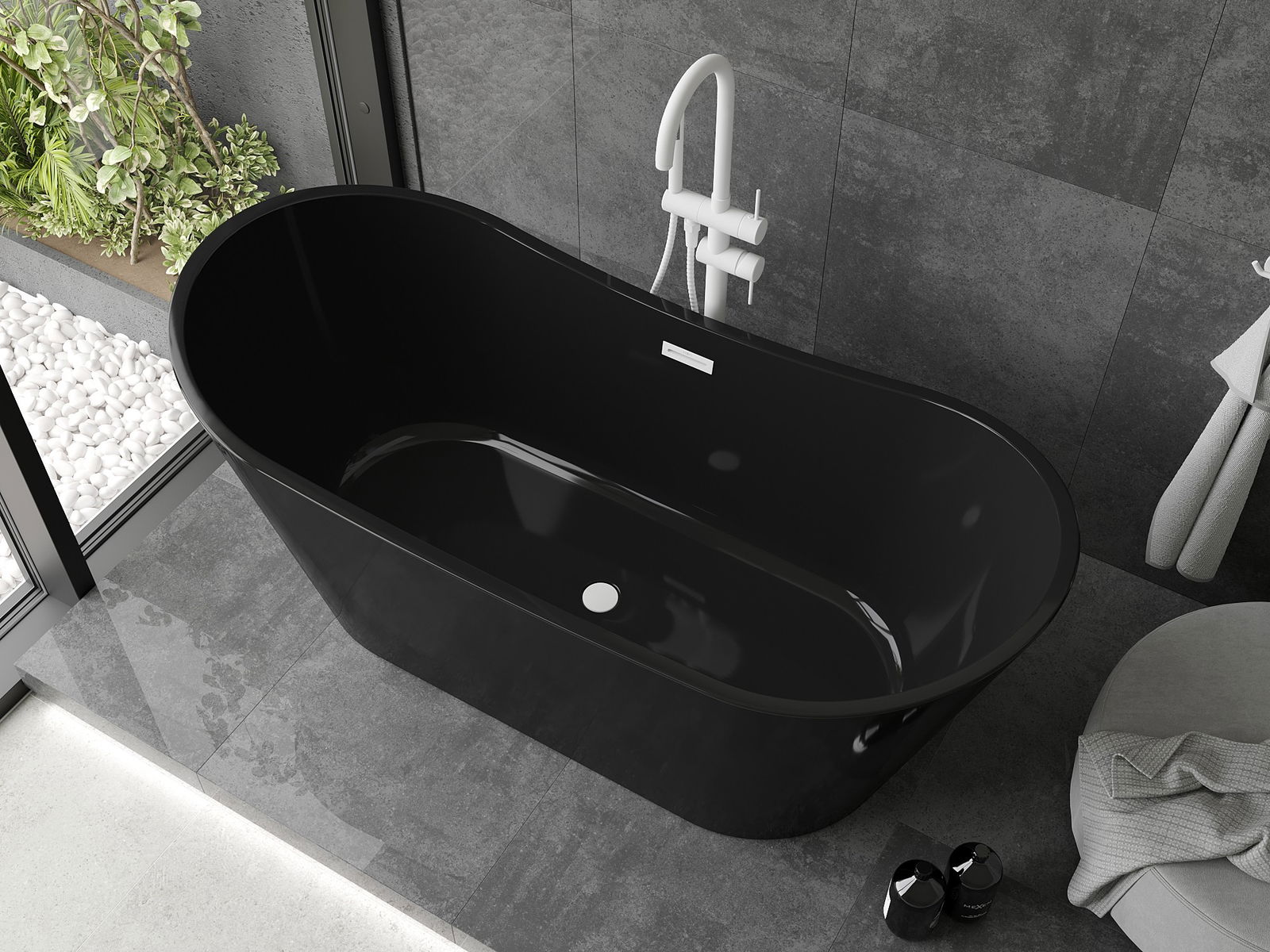 Mexen Montana je čudovita samostoječa kad velikosti 170 x 80 cm, idealna za moderne kopalnice. Izdelana iz sanitarnega akrila, zagotavlja izjemno trajnost in odpornost na UV žarke. Njena elegantna črna barva z bleščečo obdelavo v kombinaciji z belim prelivom dodaja slog vsakemu notranjemu prostoru. Zahvaljujoč enostavni namestitvi in priloženemu sifonu ter klik-klak čepu postane montaža preprosta. Poleg tega ovalna oblika in globina 44,5 cm zagotavljata udobne kopeli.