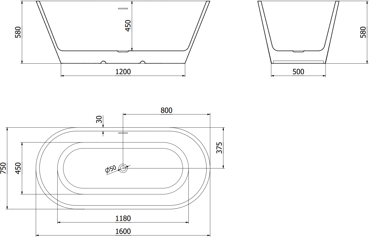 Mexen Luna samostoječa kad 160 x 75 cm, bela, črni preliv - 52031607500-70