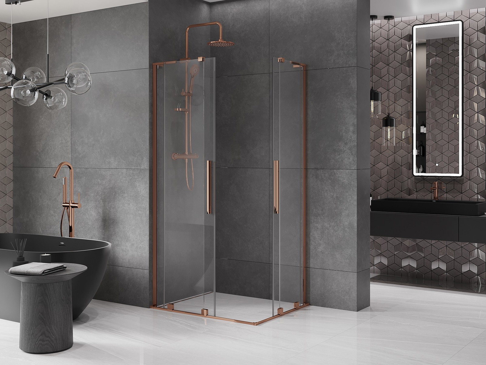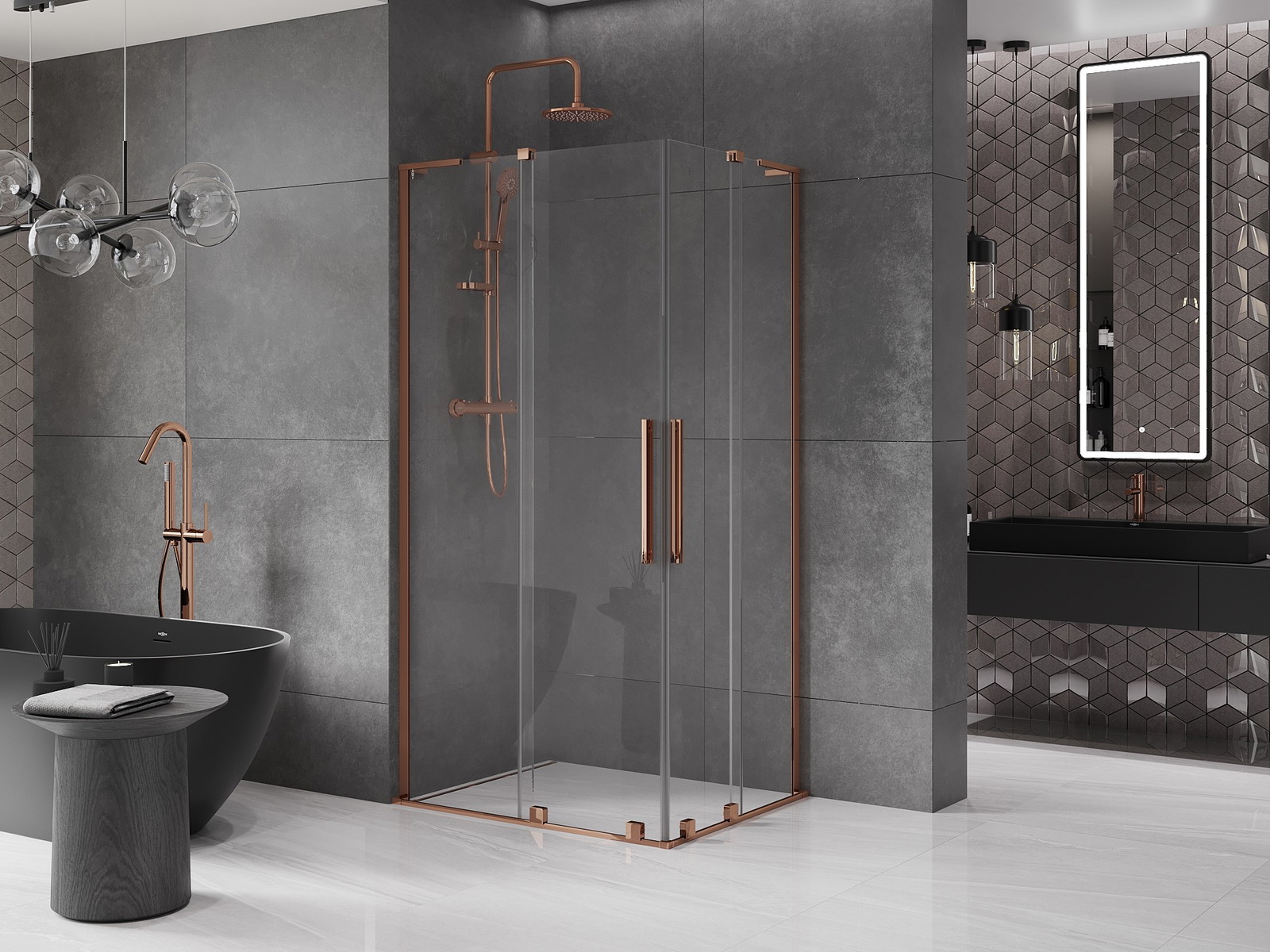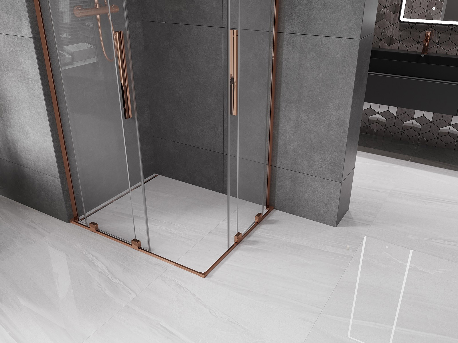 Pršna kabina Mexen Velar L Duo združuje eleganco in funkcionalnost. Njena velikost 100x90 cm in višina 200 cm omogočata, da se popolnoma prilega vsaki kopalnici. Univerzalna montaža in drsna vrata iz prozornega kaljenega stekla debeline 8 mm zagotavljajo udobje uporabe. Zaključek v rožnatem zlatu dodaja pridih luksuza, premaz za lažje čiščenje pa prihrani čas. Dodatne funkcije, kot je možnost montaže na tuš kad ali ploščice ter kakovostni aluminijasti in jekleni elementi, naredijo ta izdelek edinstveno izbiro.