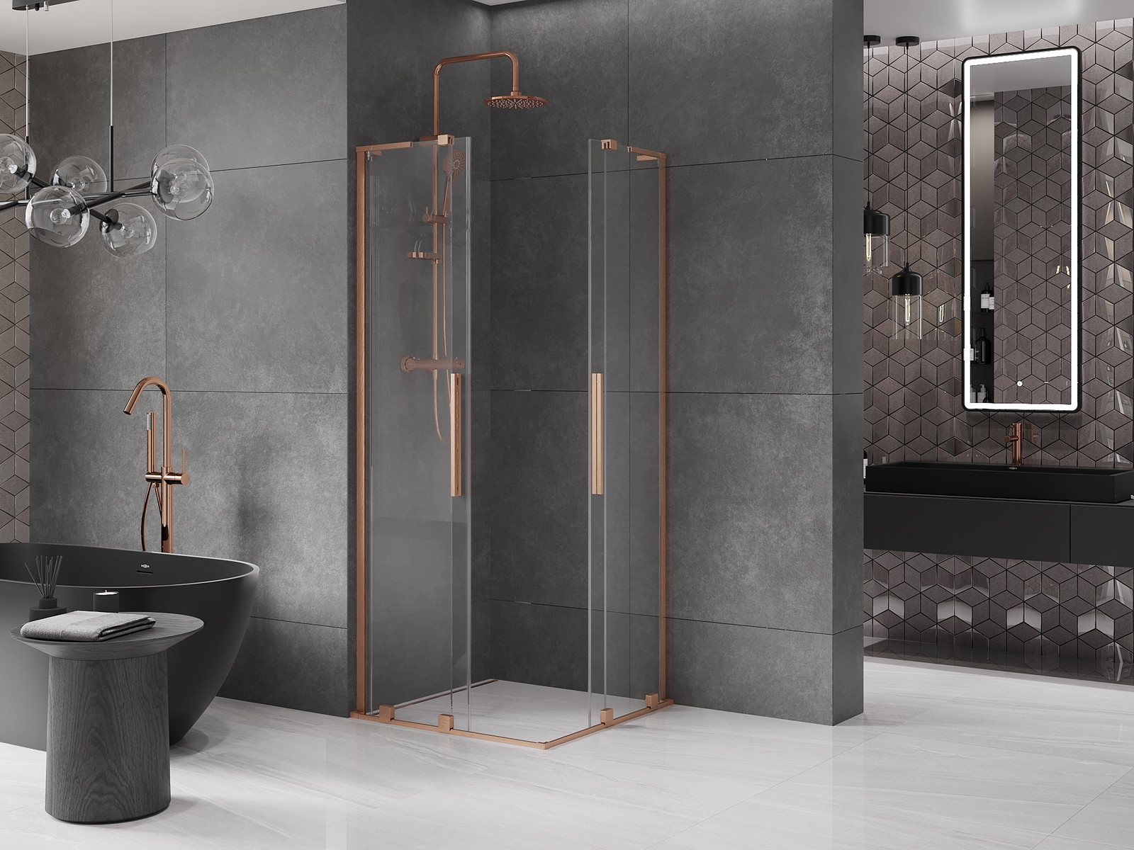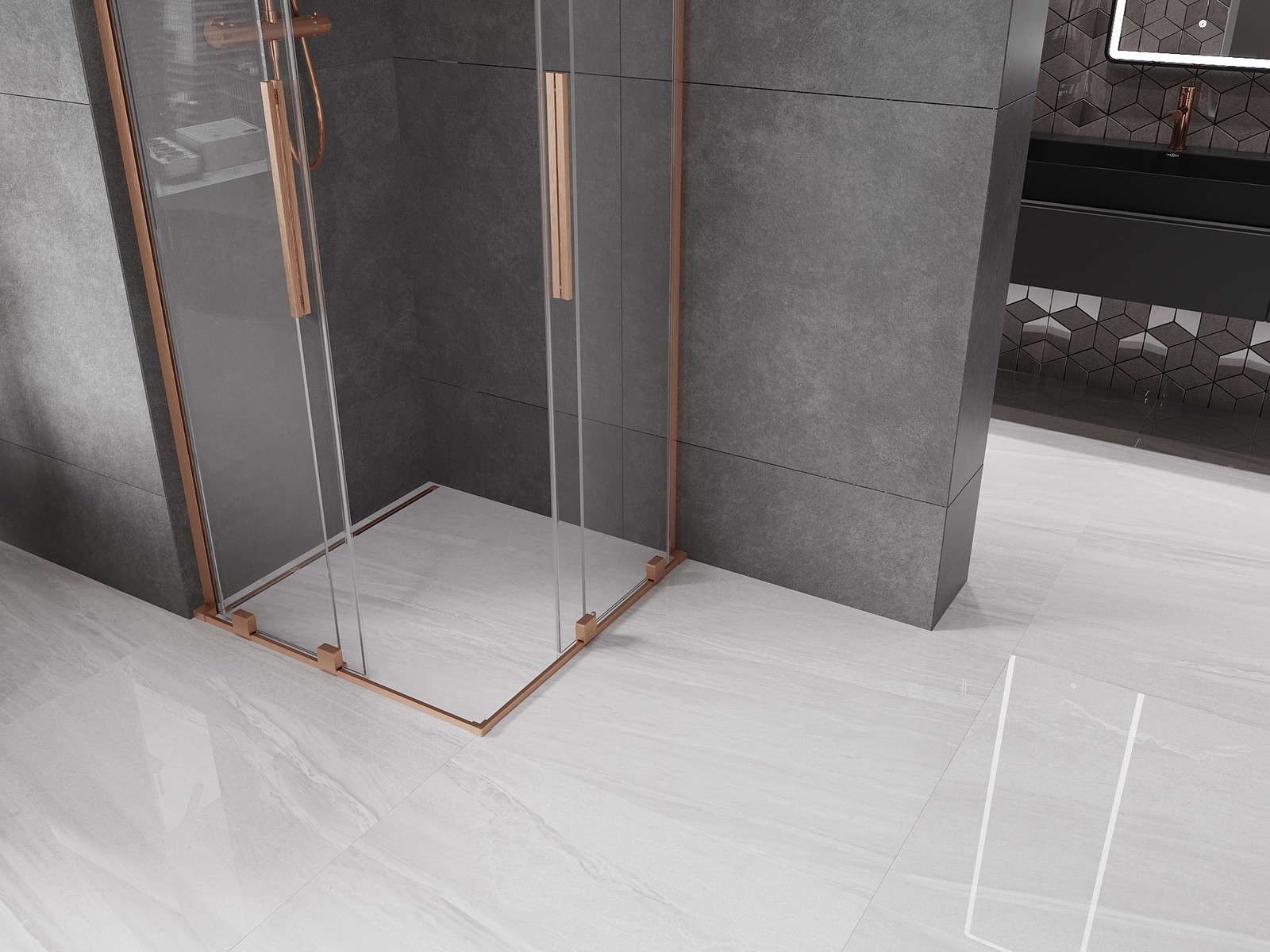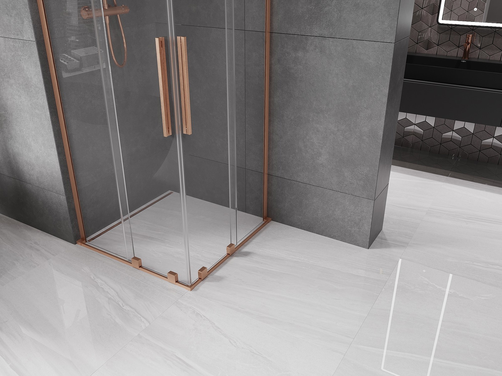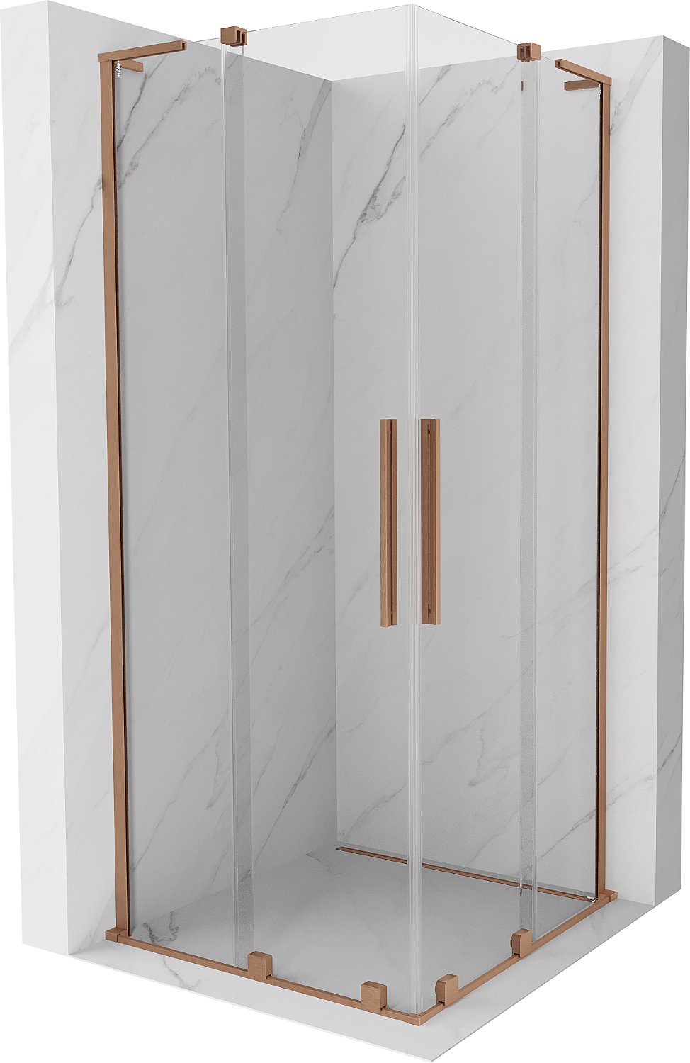 Mexen Velar L Duo drsna tuš kabina 80 x 80 cm, transparentna, brušen baker - 871-080-080-02-03-65
