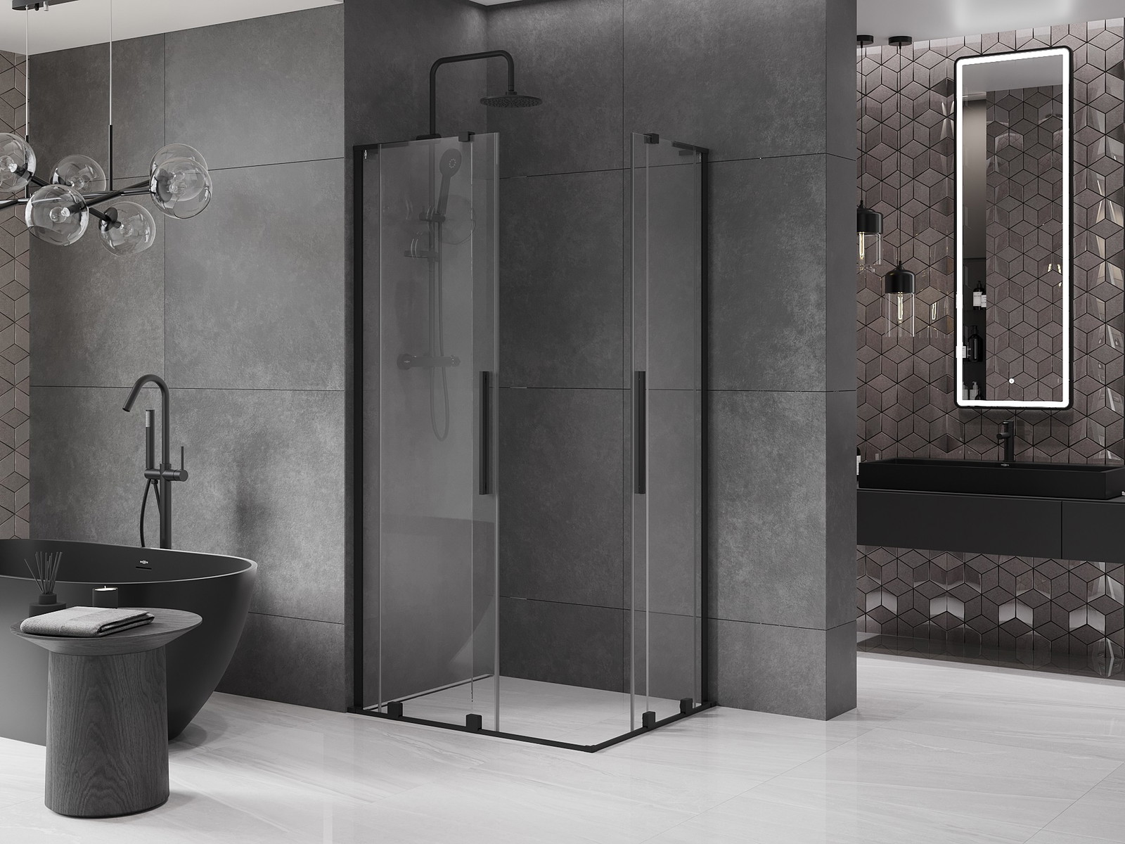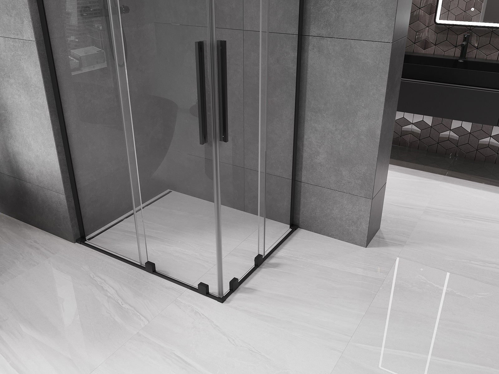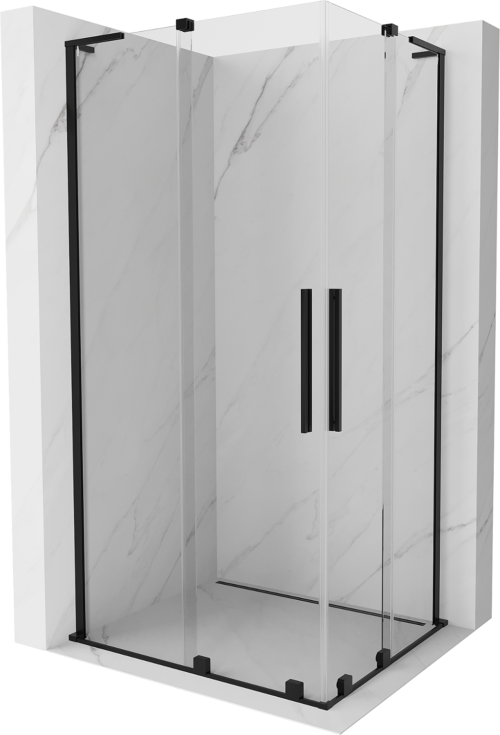 Mexen Velar L Duo drsna tuš kabina 90 x 80 cm, prozorna, črna - 871-090-080-02-03-70