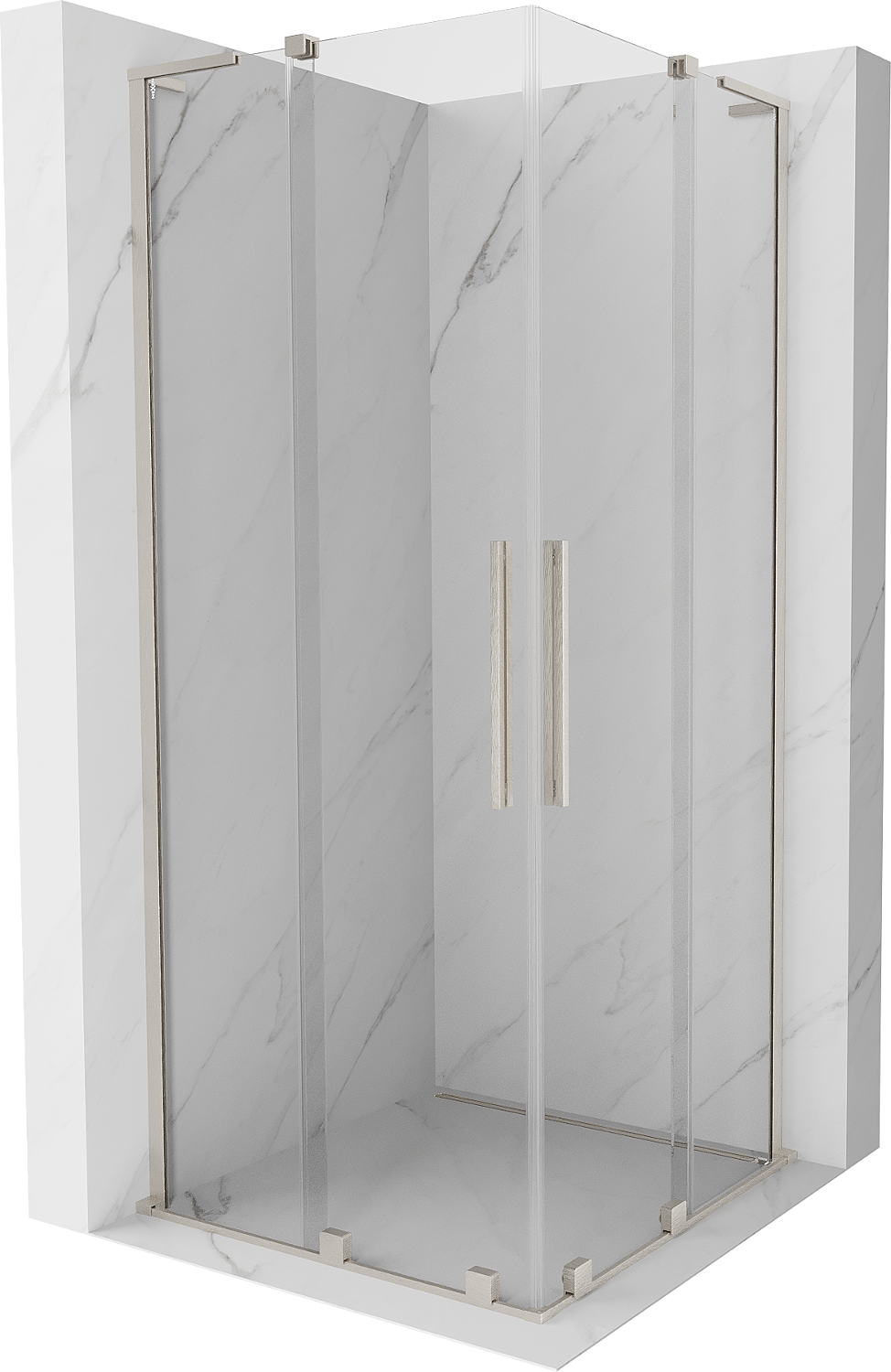 Mexen Velar L Duo drsna pršna kabina 80 x 80 cm, prozorna, brušen nikel - 871-080-080-02-03-97