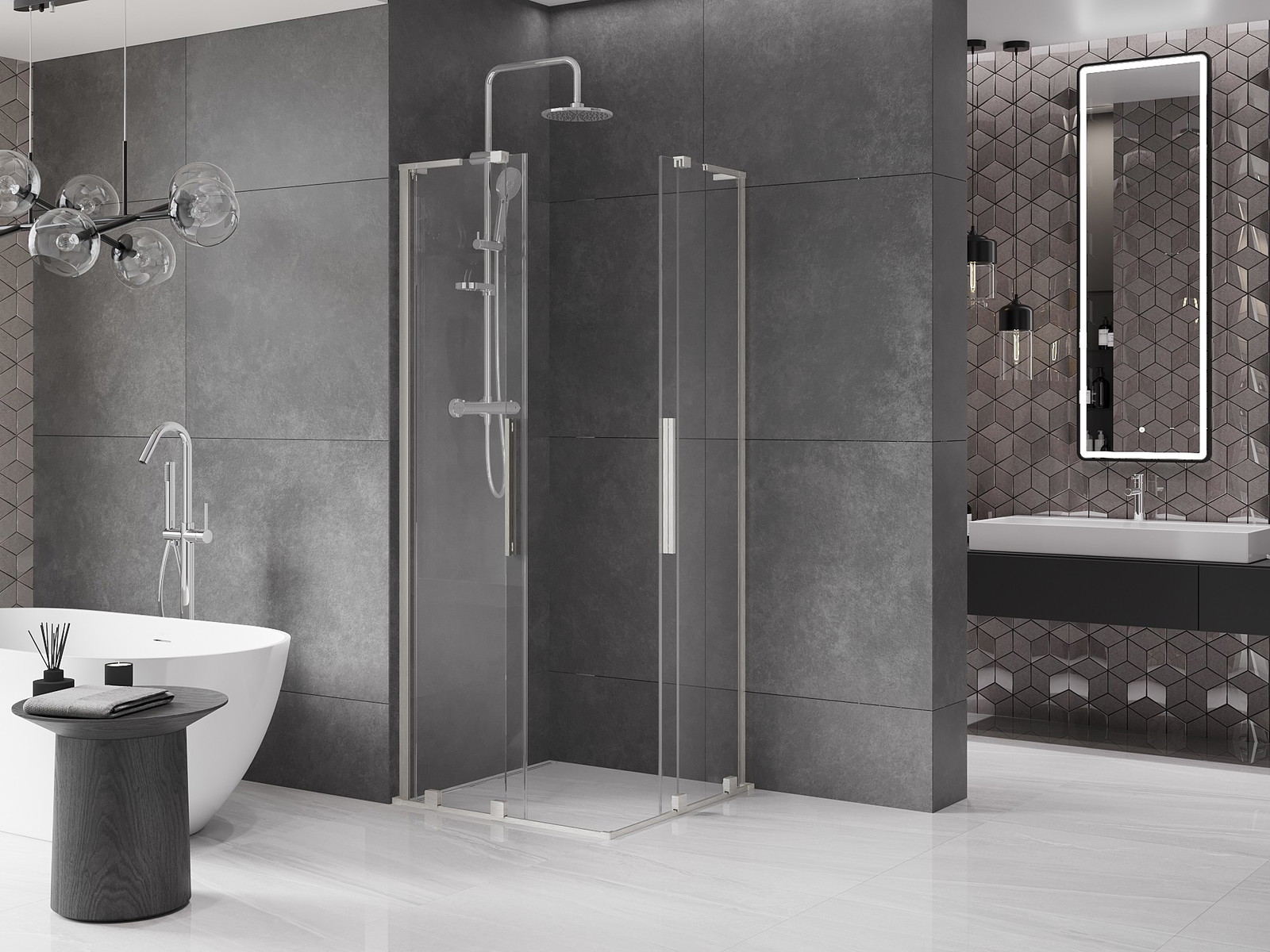 Zahvaljujoč uporabi univerzalnega sistema montaže je mogoče pršne vrata namestiti na desni ali levi strani, odvisno od potreb. Zahvaljujoč temu lahko z lahkoto oblikujete prho, prilagojeno prostoru v kopalnici.