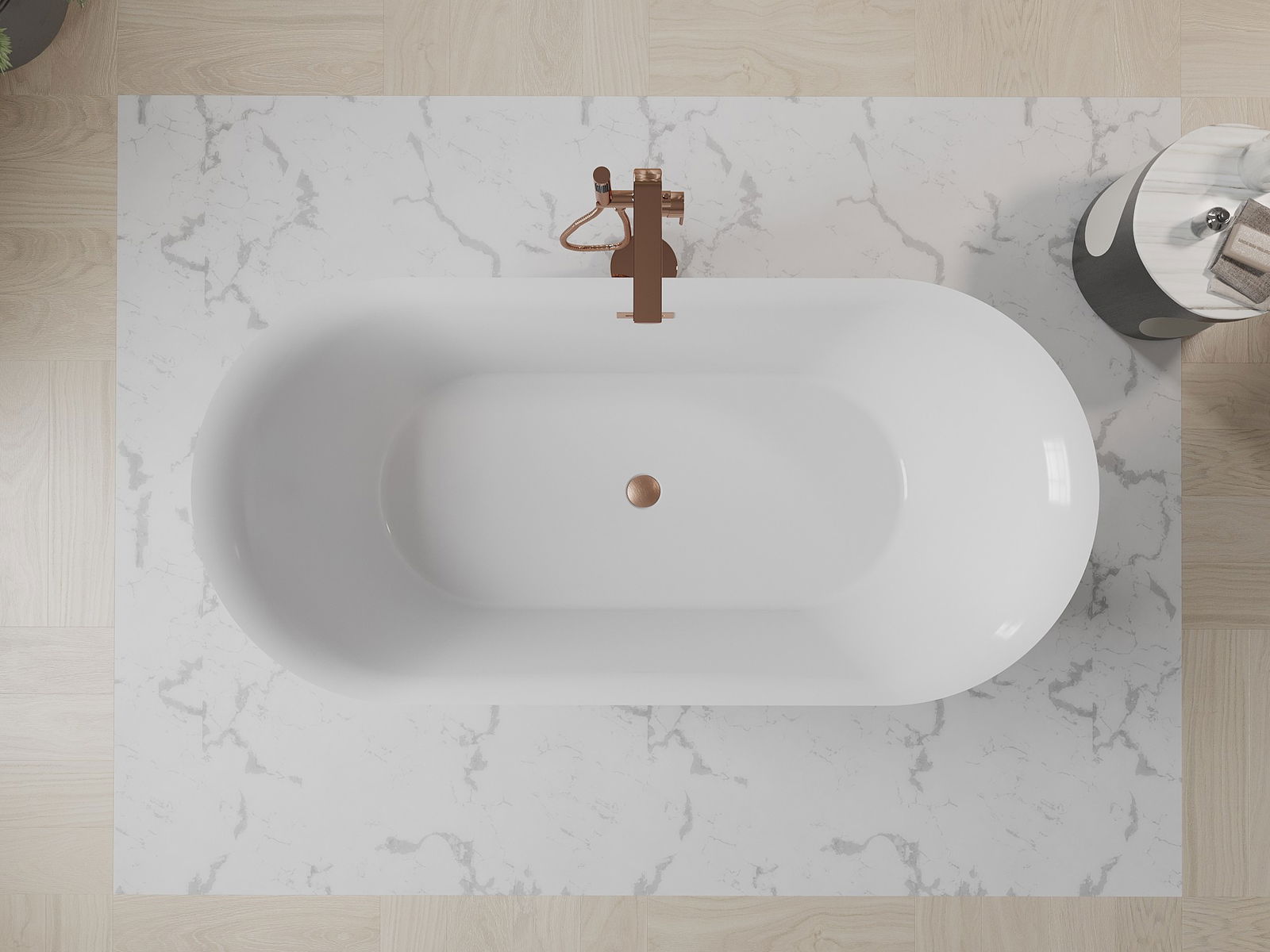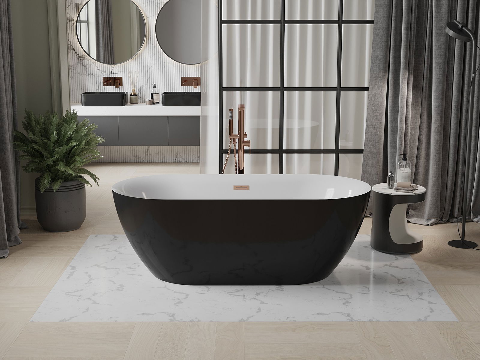 Mexen Roxy samostoječa kopalna kad 170 x 80 cm, bela/črna, preliv brušeni baker - 51201708075-65