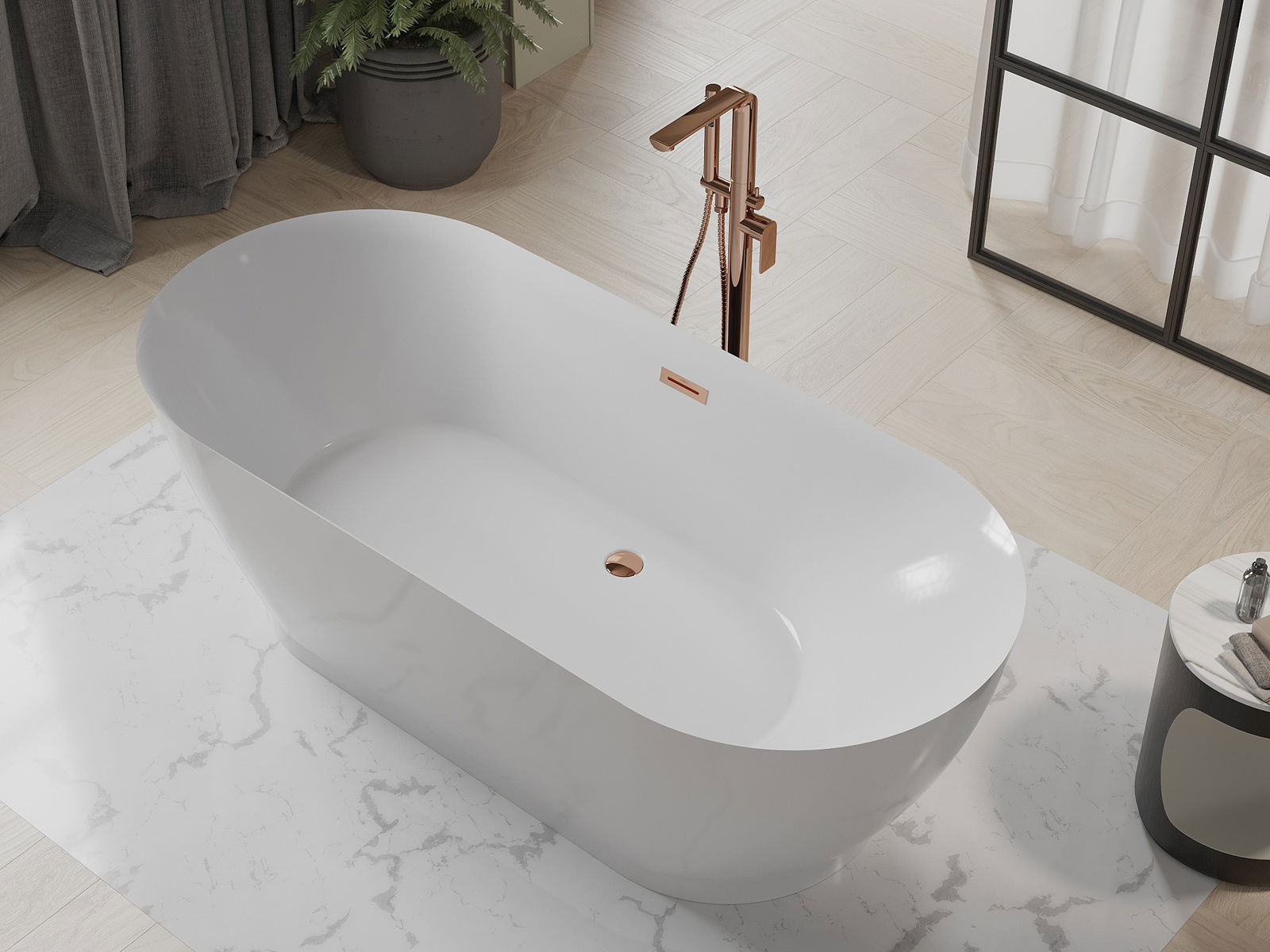 Mexen Roxy samostoječa kad 180 x 85 cm, bela, preliv rožnato zlato - 51201808500-60