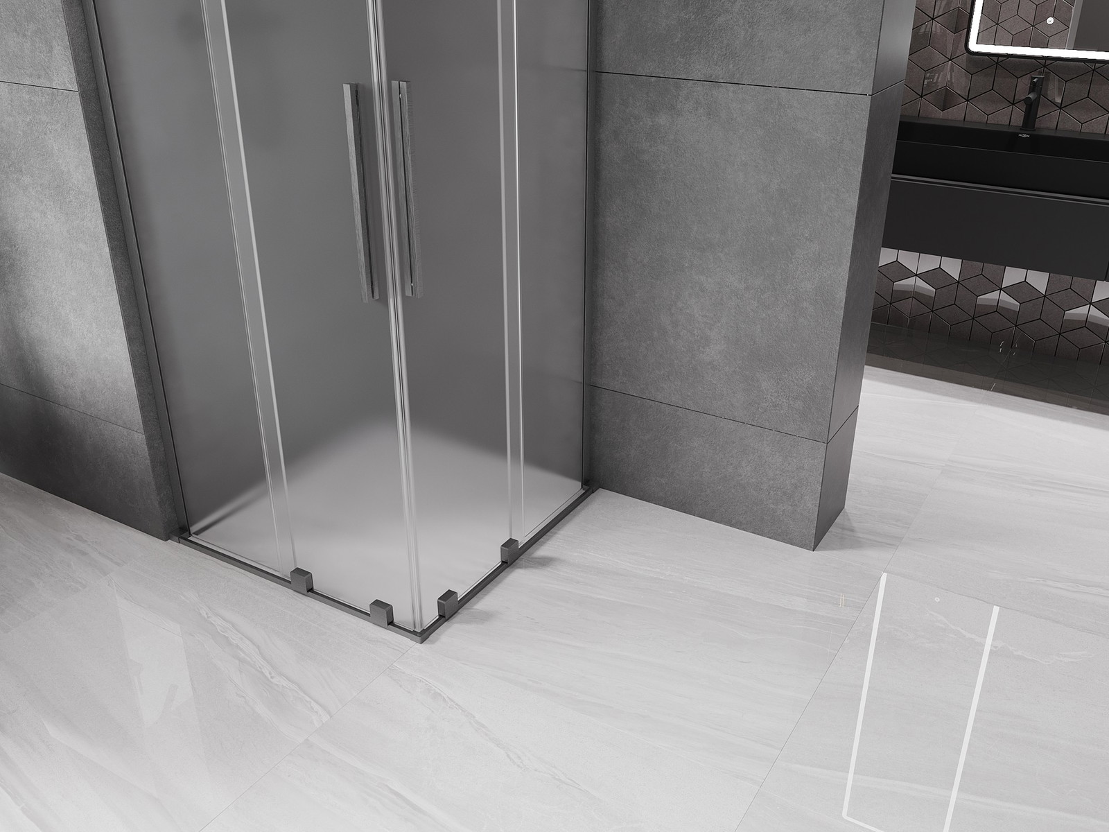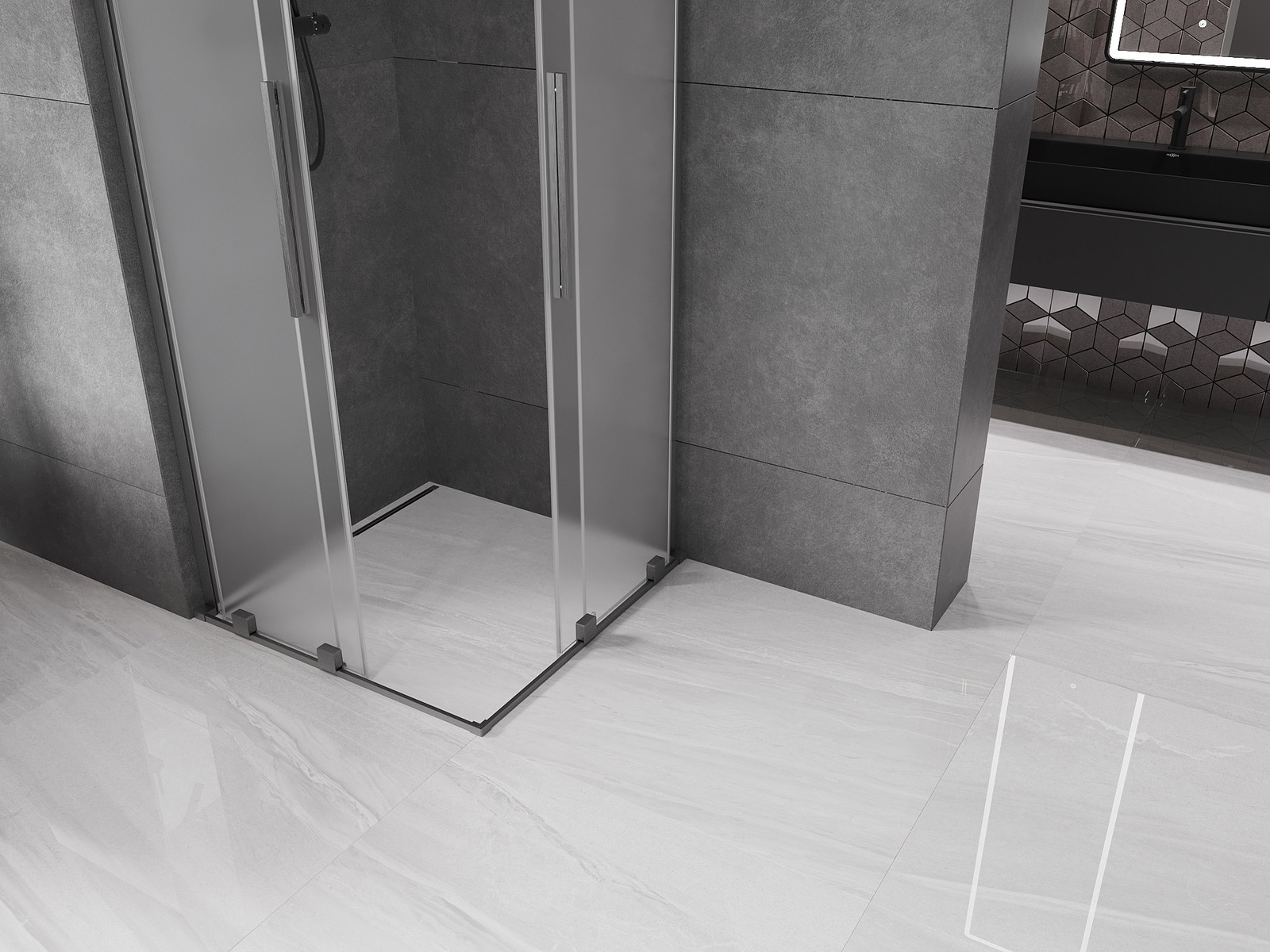 Mexen Velar L Duo drsna tuš kabina 80 x 80 cm, mraz, brušena gun gray - 871-080-080-02-33-66