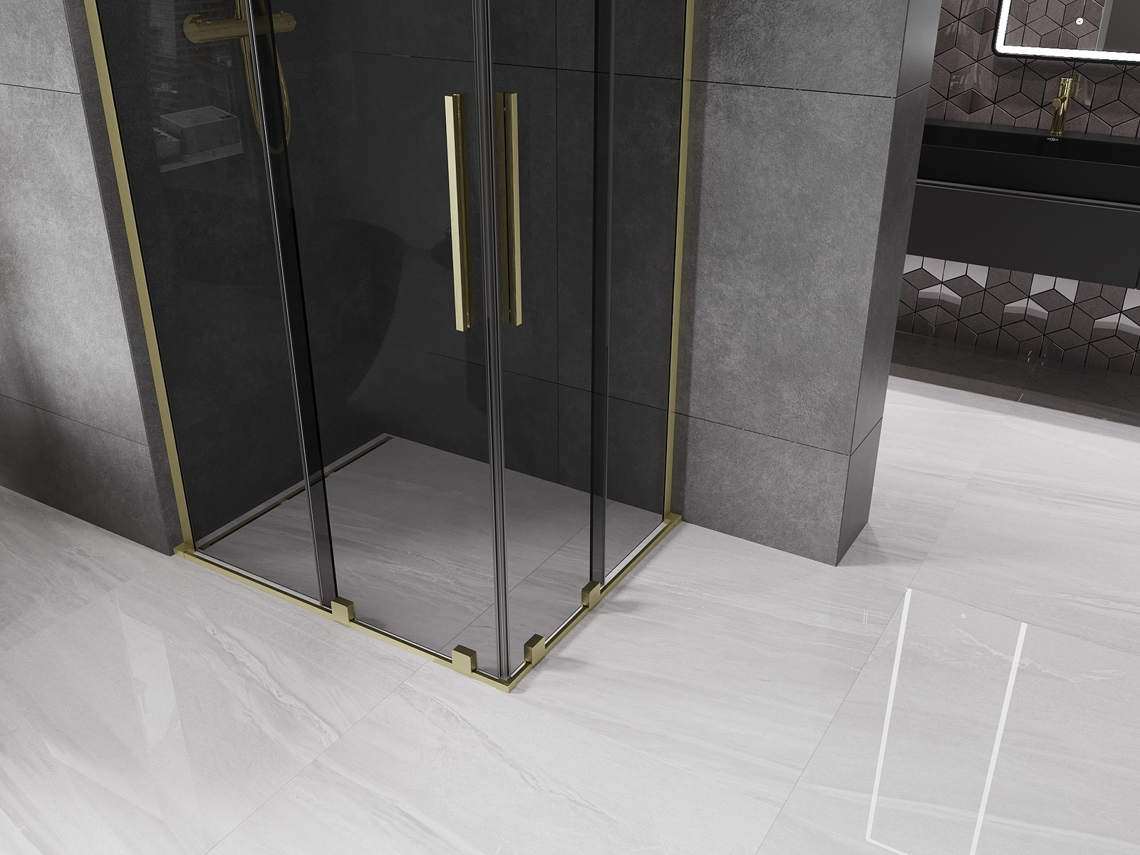 Mexen Velar L Dvojna tuš kabina s drsnimi vrati 90 x 80 cm, grafit, zlato brušena - 871-090-080-02-43-55