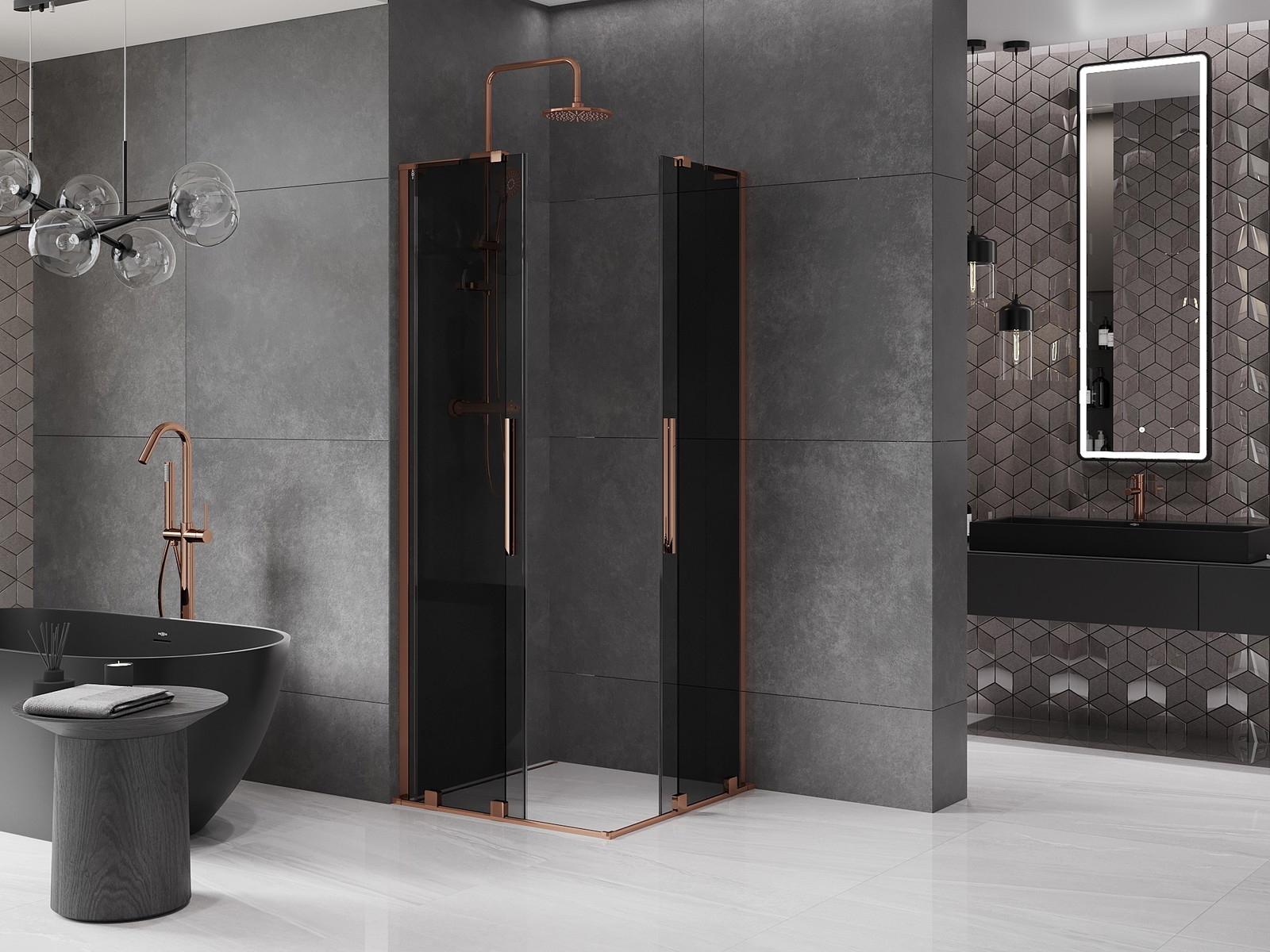 Mexen Velar L Duo drsna tuš kabina 80 x 80 cm, grafitno, rožnato zlato - 871-080-080-02-43-60