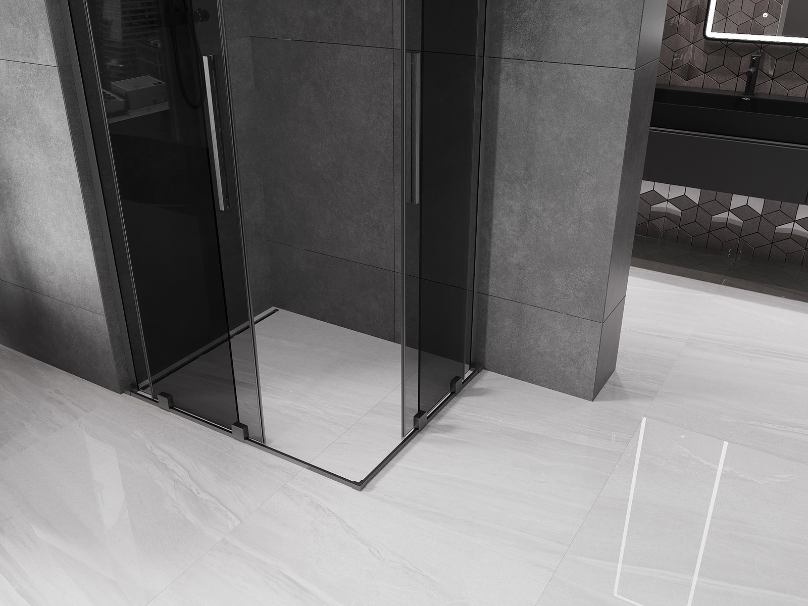 Kabina za prhanje Mexen Velar L Duo združuje funkcionalnost in eleganco. S svojo velikostjo 90x80 cm in višino 200 cm se popolnoma prilega različnim kopalnicam. Opremljena z univerzalno montažo in drsnimi vrati, ponuja praktičnost in udobje uporabe. Grafitno kaljeno steklo debeline 8 mm, podprto z brušenim nerjavnim jeklom gun gray, zagotavlja trajnost in stil. Zahvaljujoč prevleki, ki olajša čiščenje, in možnosti montaže na tuš kad ali ploščice, je kabina enostavna za vzdrževanje. Kotni stabilizator iz nerjavnega jekla in aluminijasti profil dodajata stabilnost. V kompletu najdete vodoodporna tesnila in trden ročaj. Izdelek omogoča izravnavo neravnin sten in nastavitev širine, kar zagotavlja popolno prilagoditev.