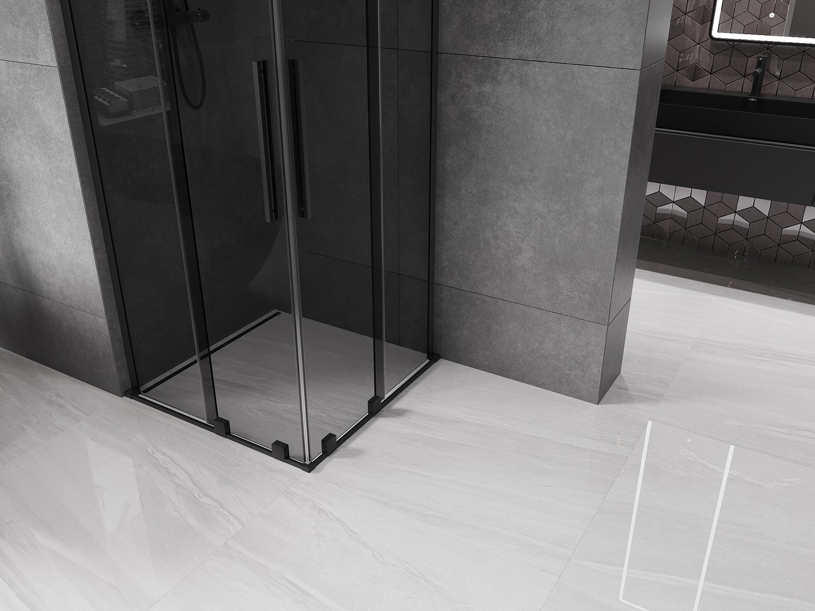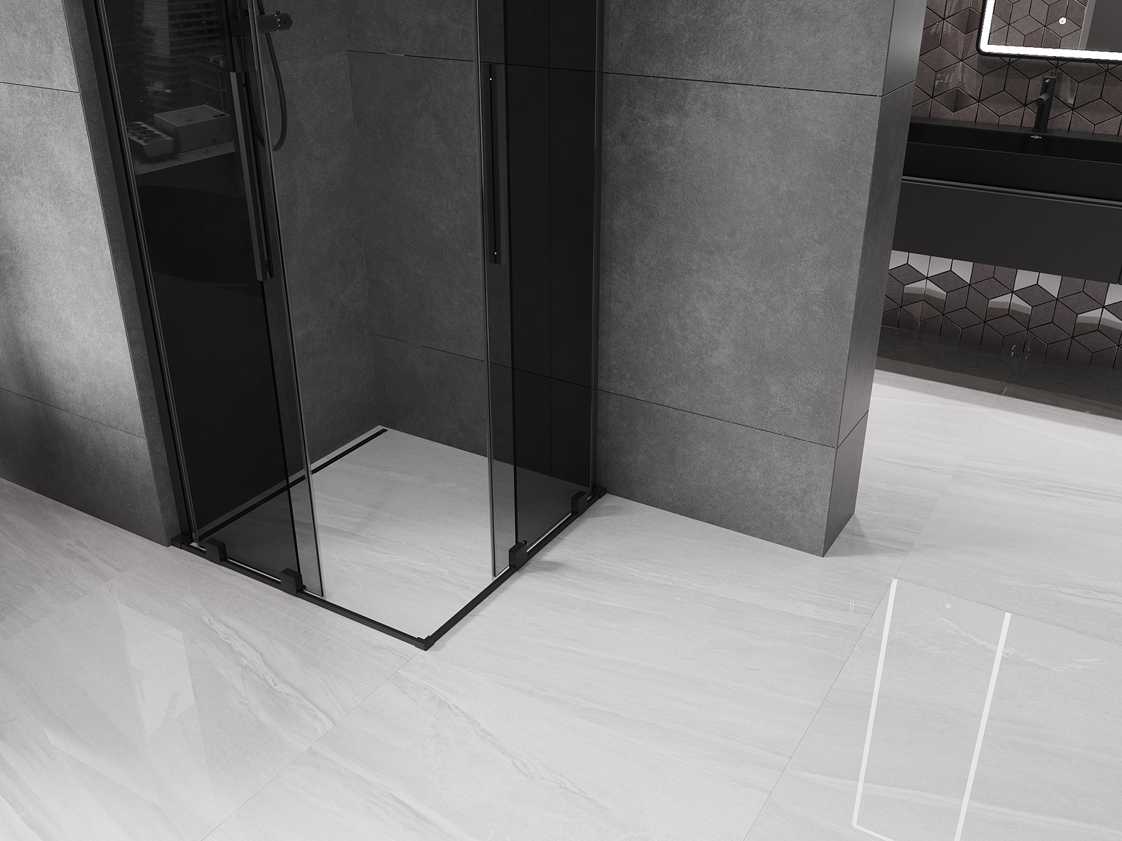 Mexen Velar L Duo drsna tuš kabina 100 x 100 cm, grafit, črna - 871-100-100-02-43-70
