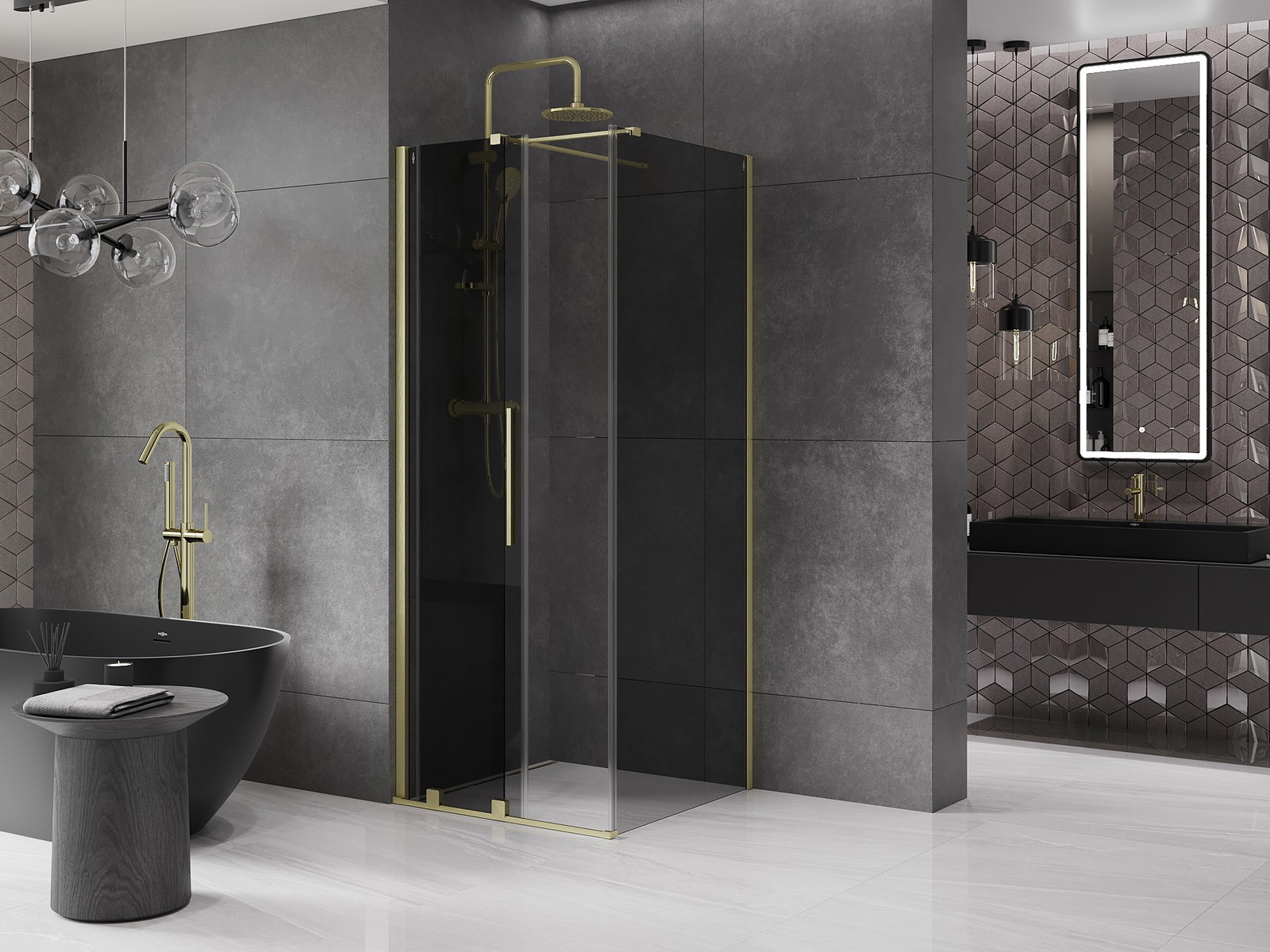 Mexen Velar drsna pršna kabina 100 x 100 cm, grafit, ščetkano zlato - 871-100-100-41-55