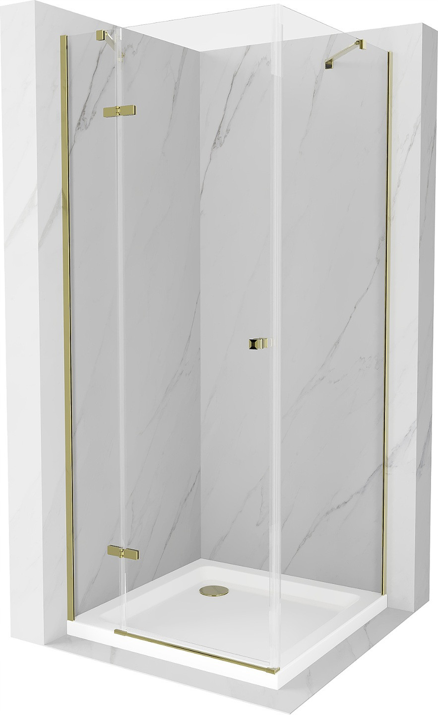 Mexen Roma niožna prha kabina 90 x 90 cm, prosojna, zlata + tuš kad Flat - 854-090-090-50-00-4010