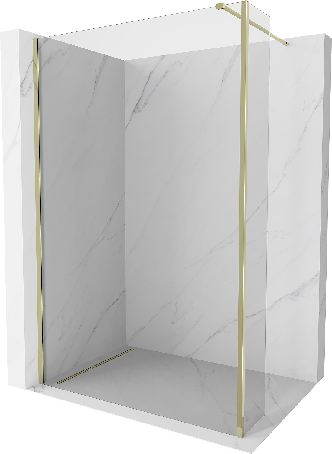 Mexen Kioto tuš stena Walk-in 135 x 40 cm, prozorna, zlata - 800-135-212-50-00-040