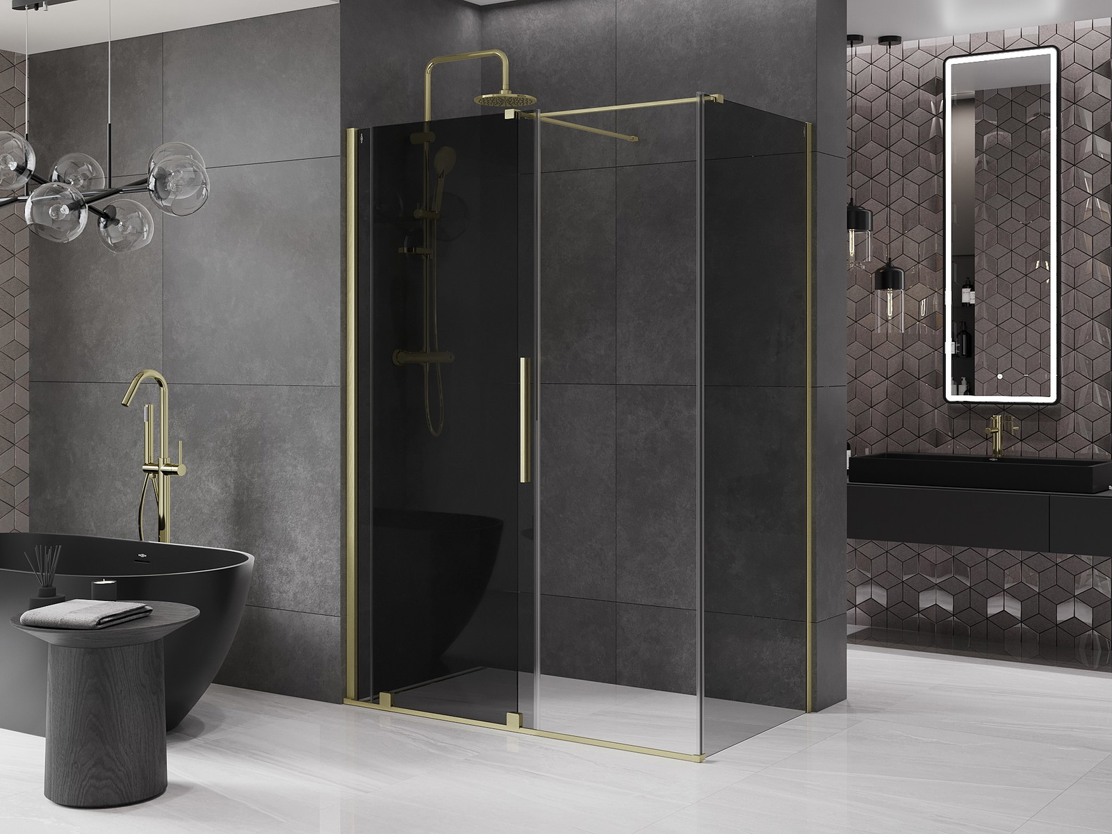 Mexen Velar drsna pršni kabina 140 x 85 cm, grafit, zlato brušeno - 871-140-085-41-55