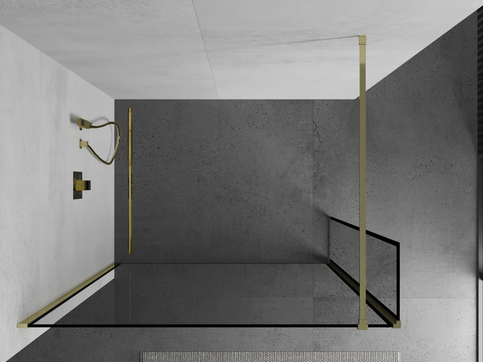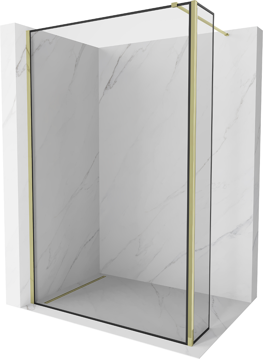 Mexen Kioto tuš pregrada Walk-in 140 x 40 cm, črn okvir, zlata - 800-140-212-50-70-040