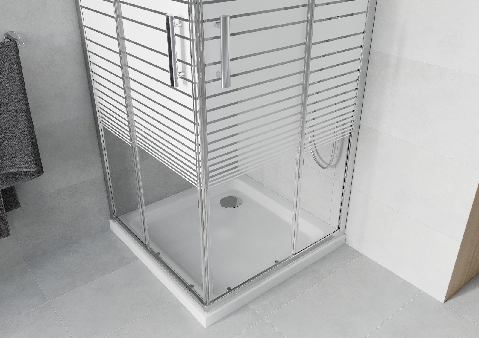 Mexen Rio kvadratna tuš kabina 80 x 80 cm, bele črte, krom + ravna kad, bela - 860-080-080-01-20-4010