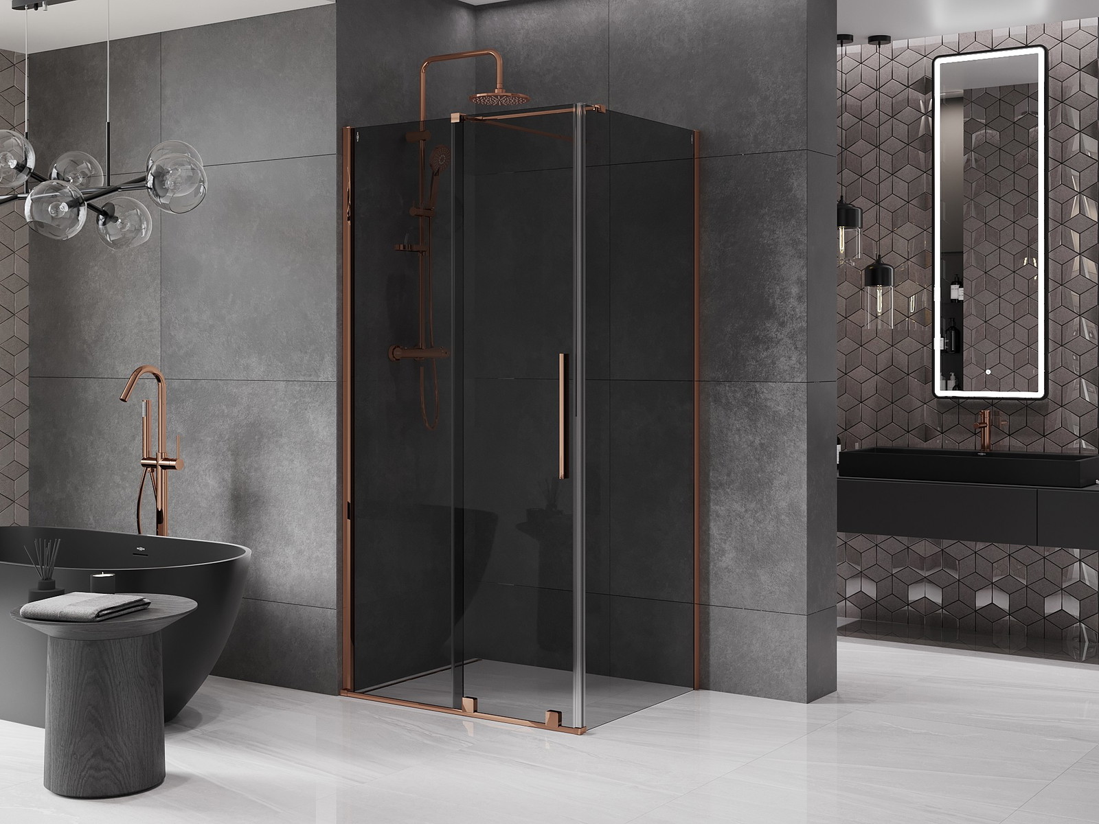 Mexen Velar je elegantna drsna tuš kabina z dimenzijami 120x70 cm, ki se ponaša z grafitno barvo stekla in zaključkom v rožnatem zlatu. Zaradi univerzalne montaže in možnosti prilagoditve širine se prilega vsakemu notranjemu prostoru. Kaljeno steklo debeline 8 mm zagotavlja trajnost, premaz za lažje čiščenje pa poskrbi za enostavnost nege. Kabina ima funkcijo izravnave neravnin stene in popoln komplet tesnil, kar zagotavlja udobje uporabe.
