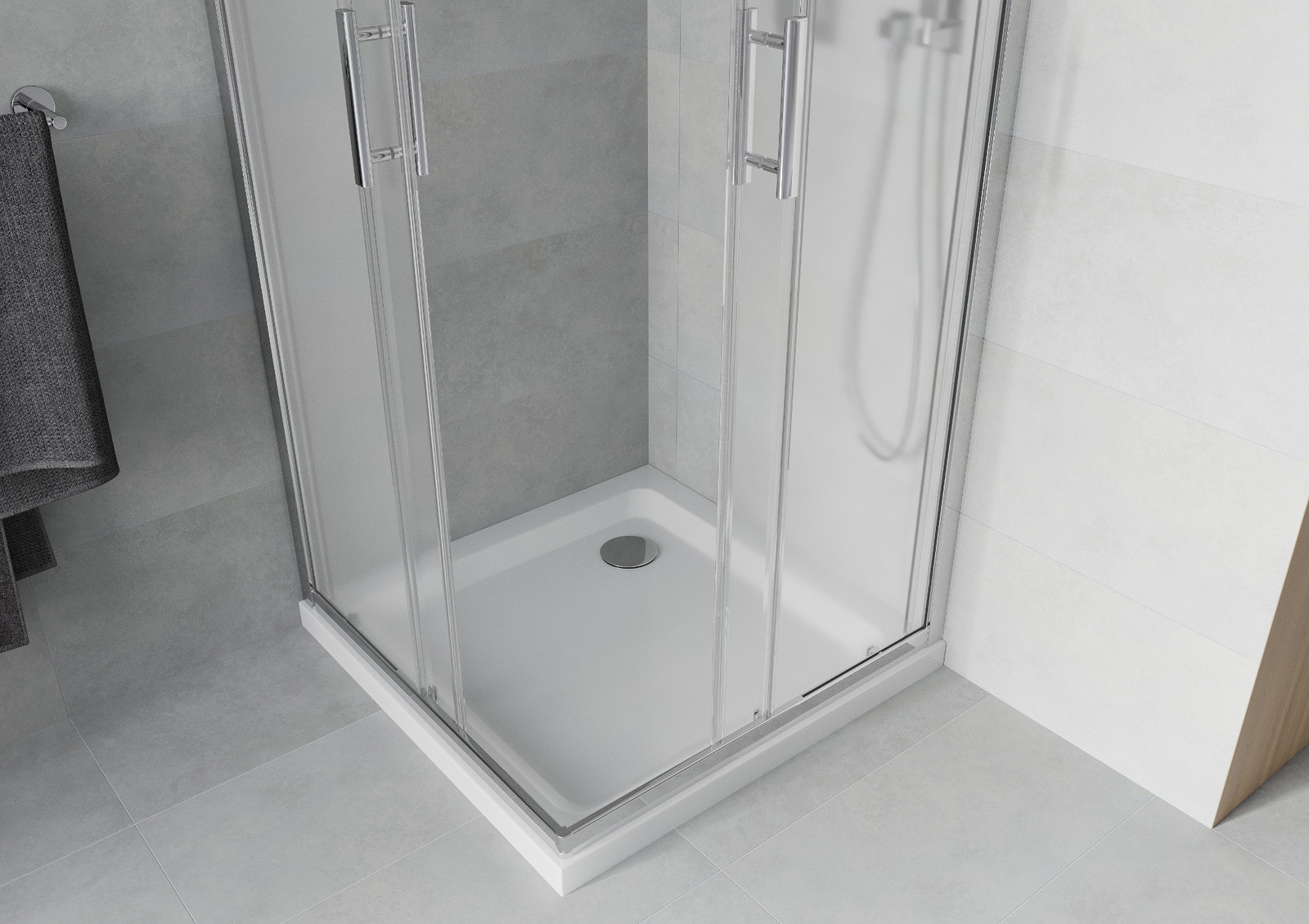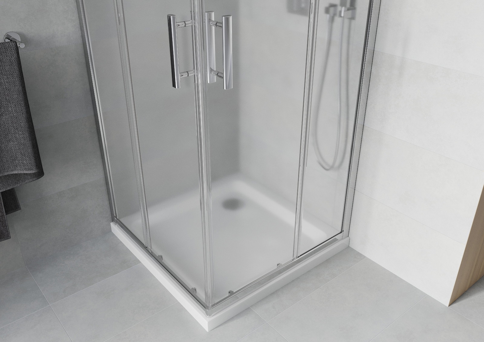Mexen Rio kvadratna tuš kabina 80 x 80 cm, mraz, krom + pladenj Flat, bela - 860-080-080-01-30-4010