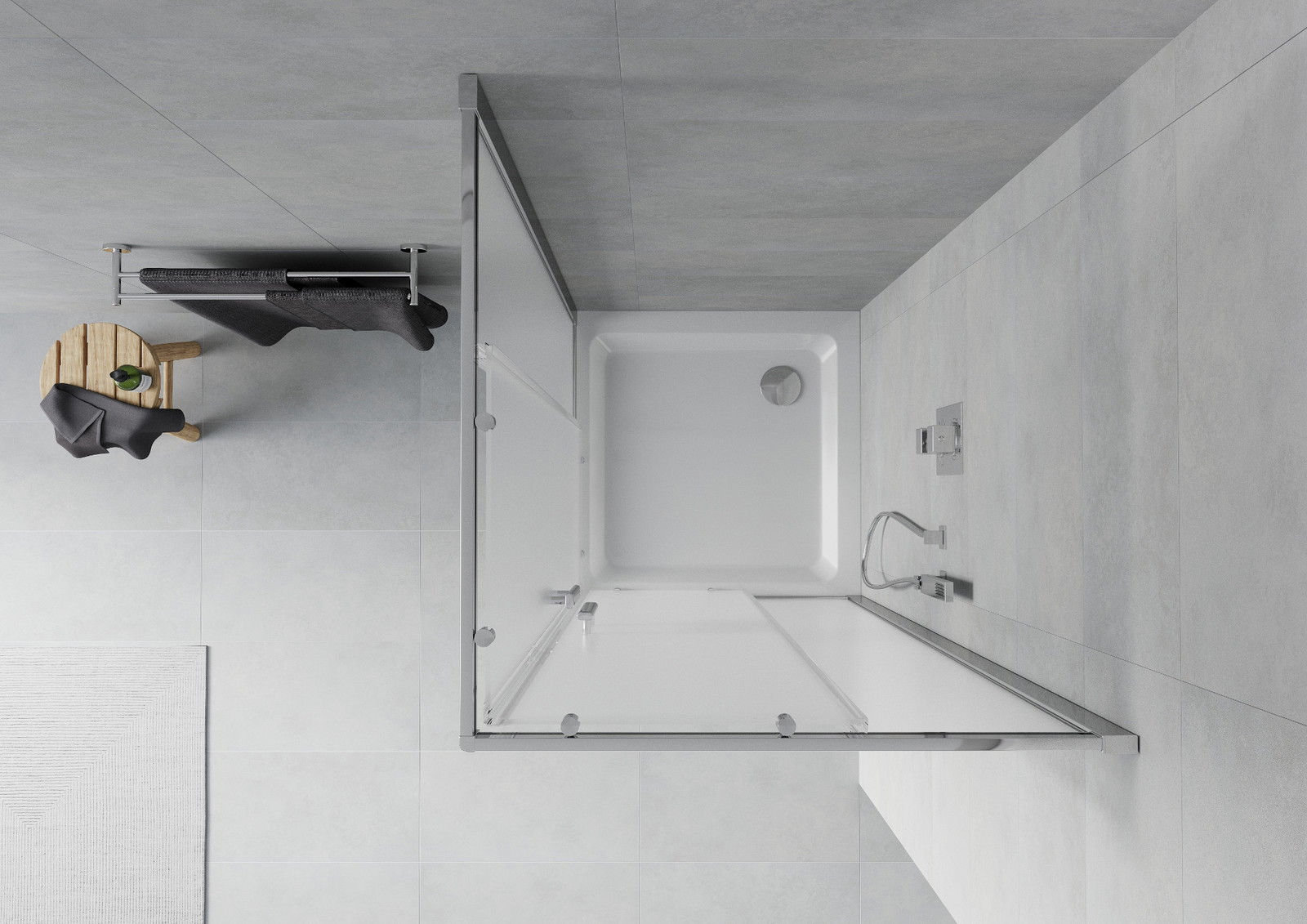 Drsna vrata se premikajo po posebnih vodilih in ne zahtevajo dodatnega prostora za odpiranje, zato so primerna za manjše kopalnice. Zaradi dvojnih koles iz trpežne plastike je njihovo gibanje gladko.