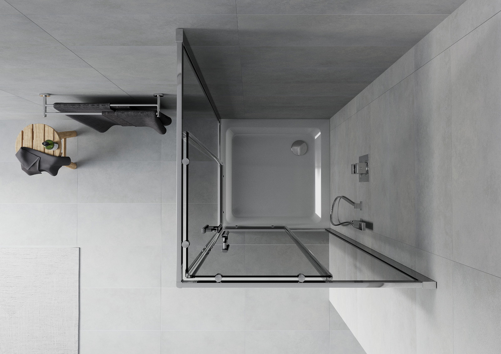 Mexen Rio kvadratna tuš kabina 90 x 90 cm, grafitna, krom + Flat tuš kad, bela - 860-090-090-01-40-4010