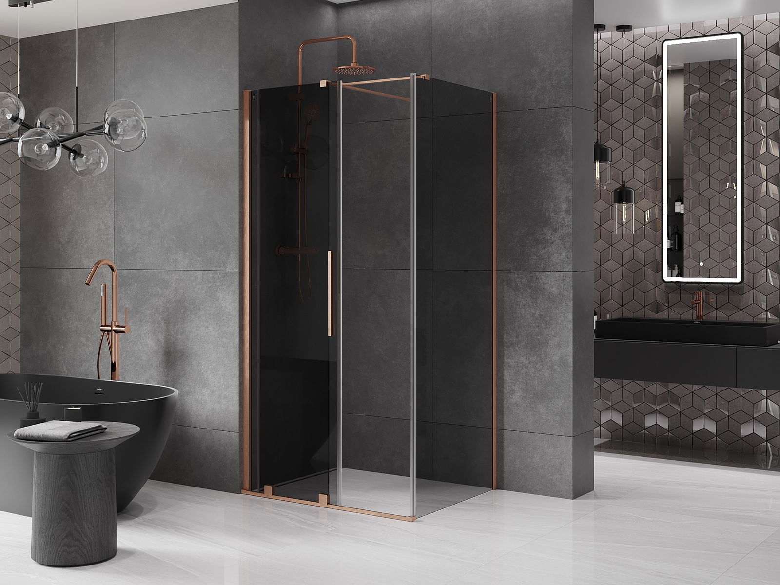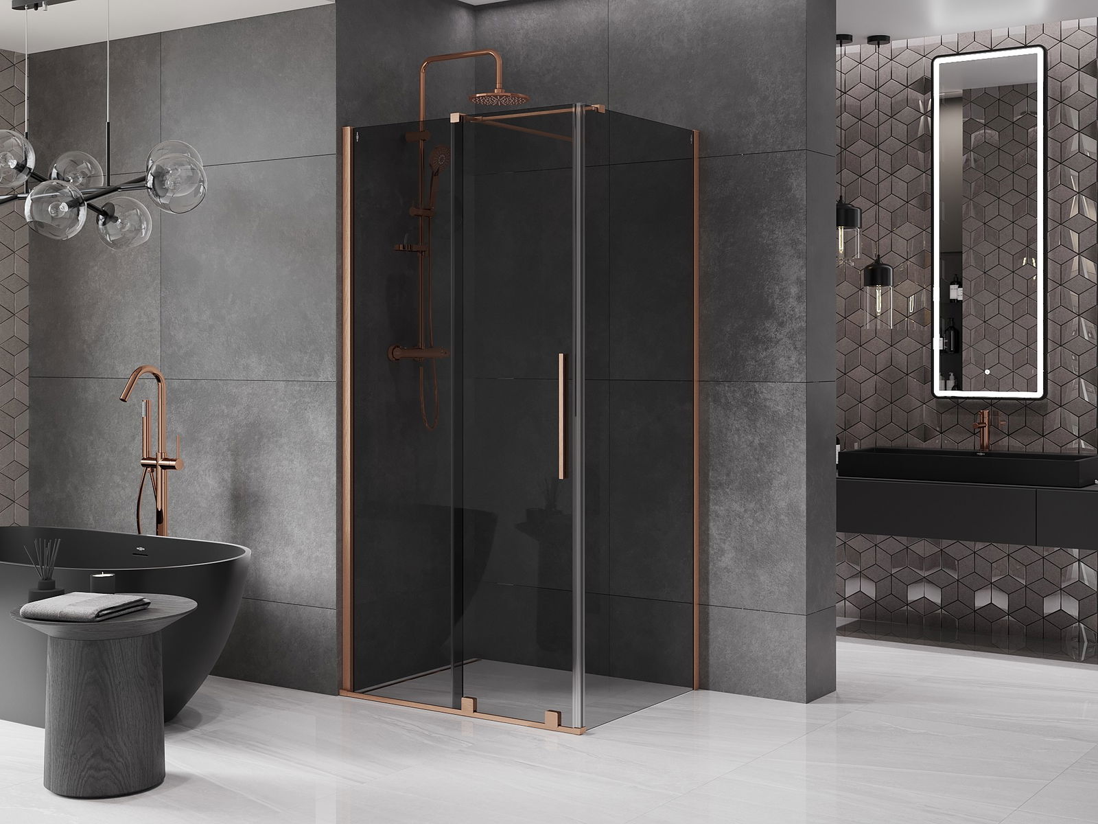 Mexen Velar drsna tuš kabina 110 x 85 cm, grafit, brušeni baker - 871-110-085-41-65