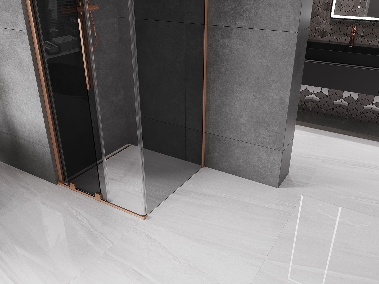 Mexen Velar drsna tuš kabina 120 x 120 cm, grafit, brušeni baker - 871-120-120-41-65