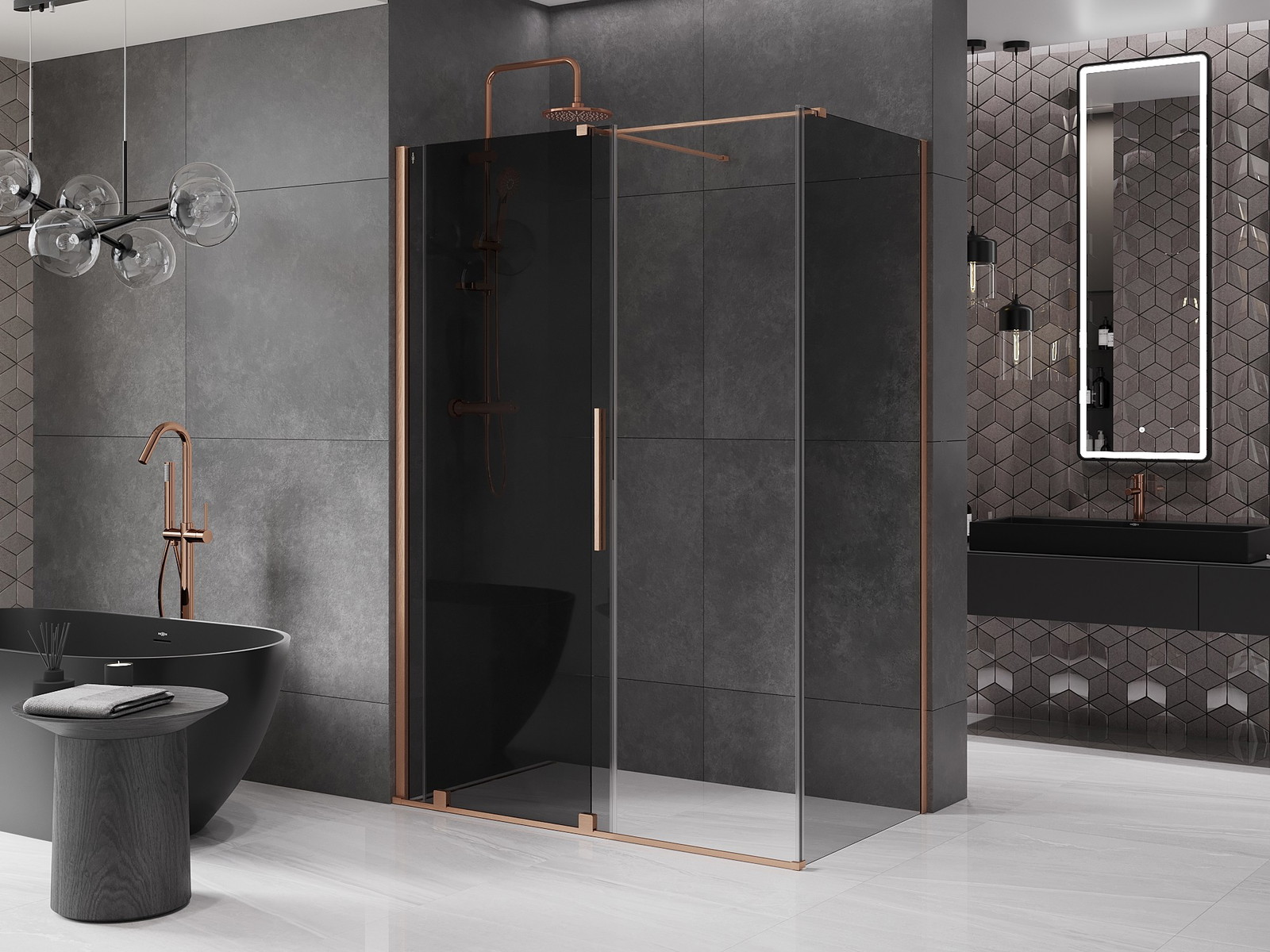 Mexen Velar drsna tuš kabina 150 x 70 cm, grafitna, brušeni baker - 871-150-070-41-65