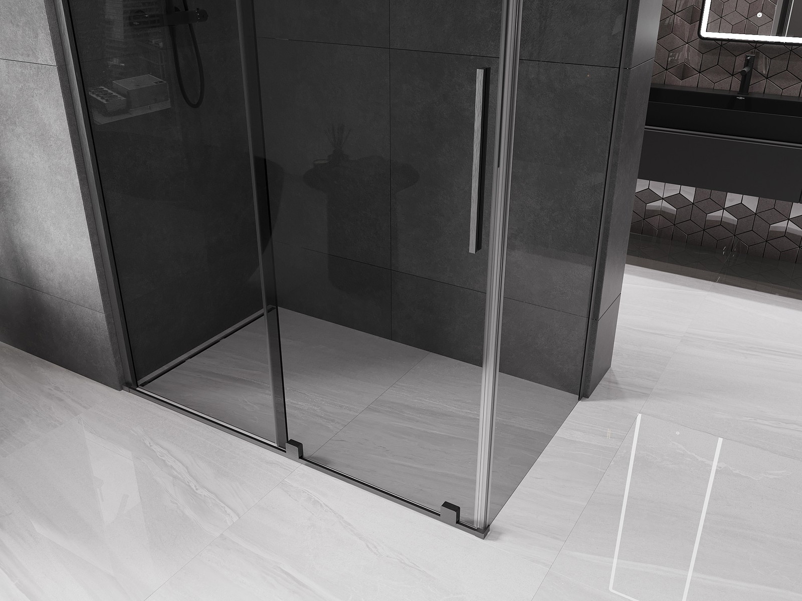 Mexen Velar drsna tuš kabina 160 x 85 cm, grafit, ščetkani gun gray - 871-160-085-41-66