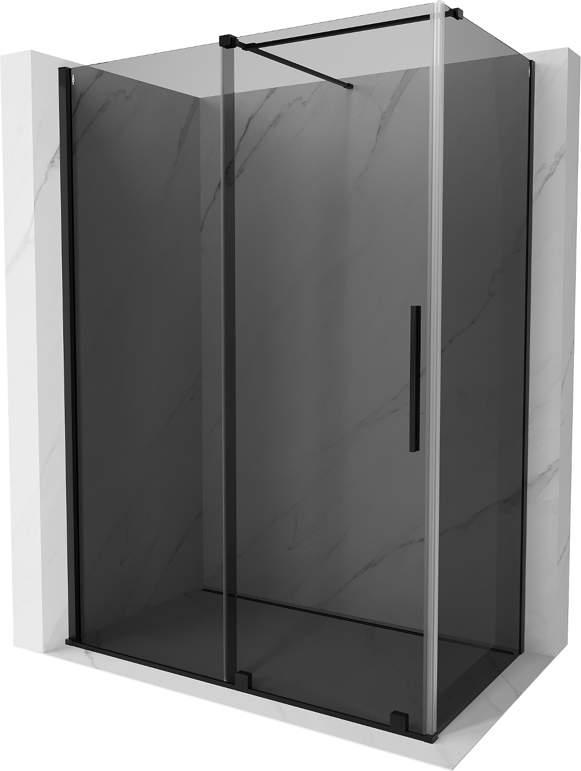 Zahvaljujoč uporabi univerzalnega sistema montaže je mogoče pršne vrata namestiti na desni ali levi strani, odvisno od potreb. Zahvaljujoč temu lahko z lahkoto oblikujete prho, prilagojeno prostoru v kopalnici.