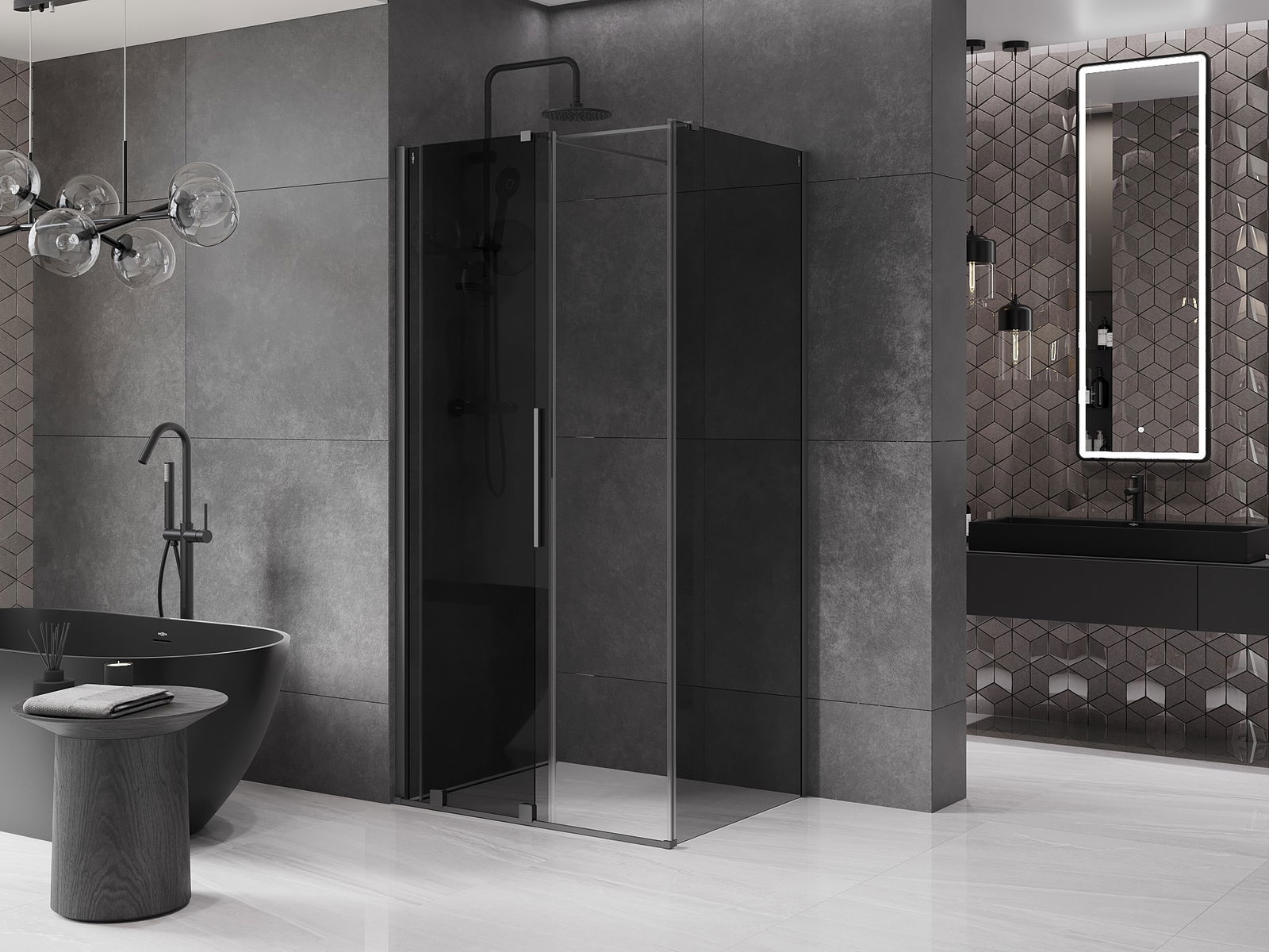 Zahvaljujoč uporabi univerzalnega sistema montaže je mogoče pršne vrata namestiti na desni ali levi strani, odvisno od potreb. Zahvaljujoč temu lahko z lahkoto oblikujete prho, prilagojeno prostoru v kopalnici.