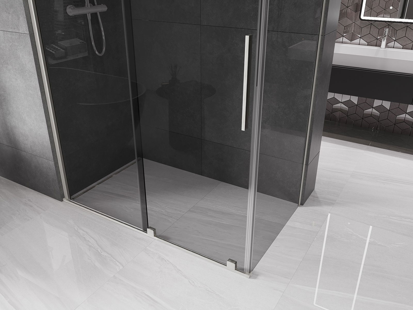 Zahvaljujoč uporabi univerzalnega sistema montaže je mogoče pršne vrata namestiti na desni ali levi strani, odvisno od potreb. Zahvaljujoč temu lahko z lahkoto oblikujete prho, prilagojeno prostoru v kopalnici.