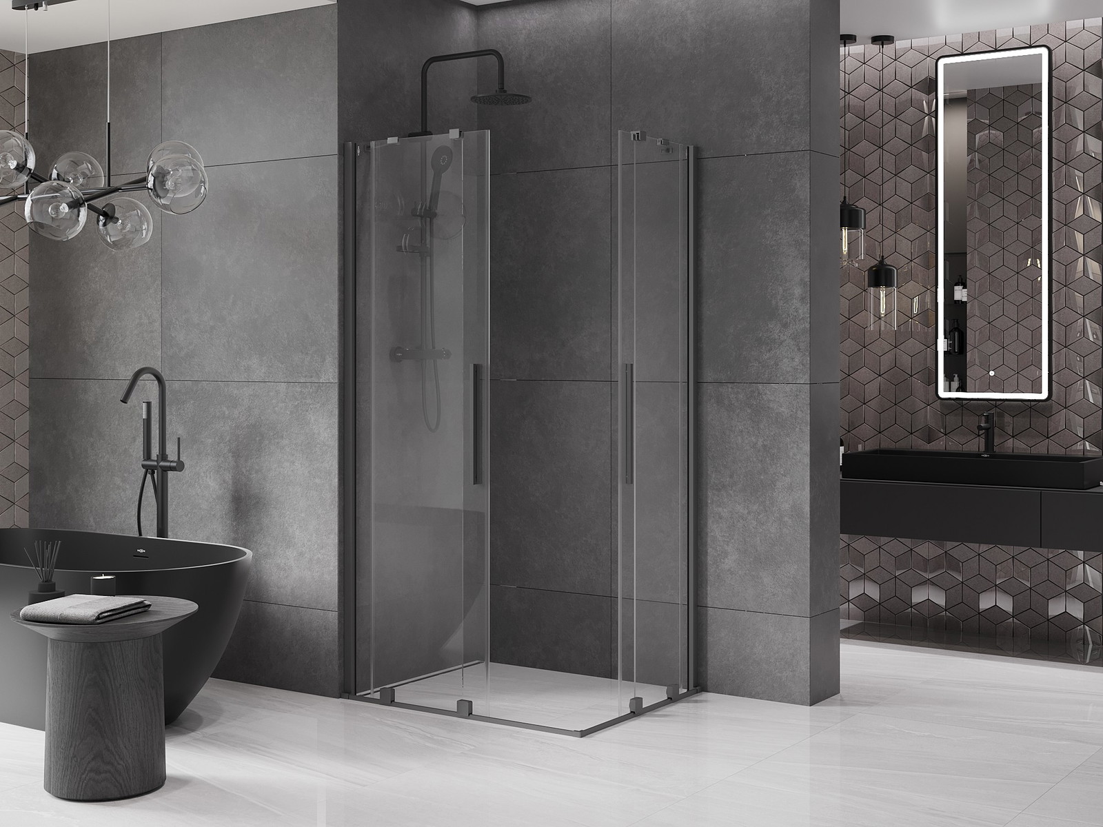 Mexen Velar Duo drsna pršna kabina 90 x 80 cm, prozorna, gun metal - 871-090-080-02-95