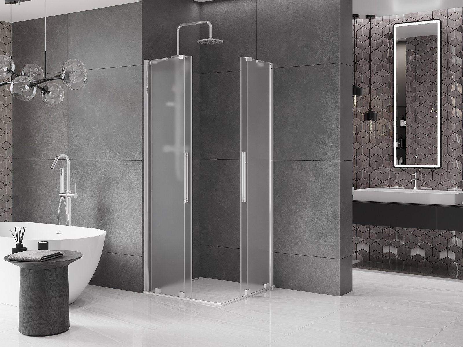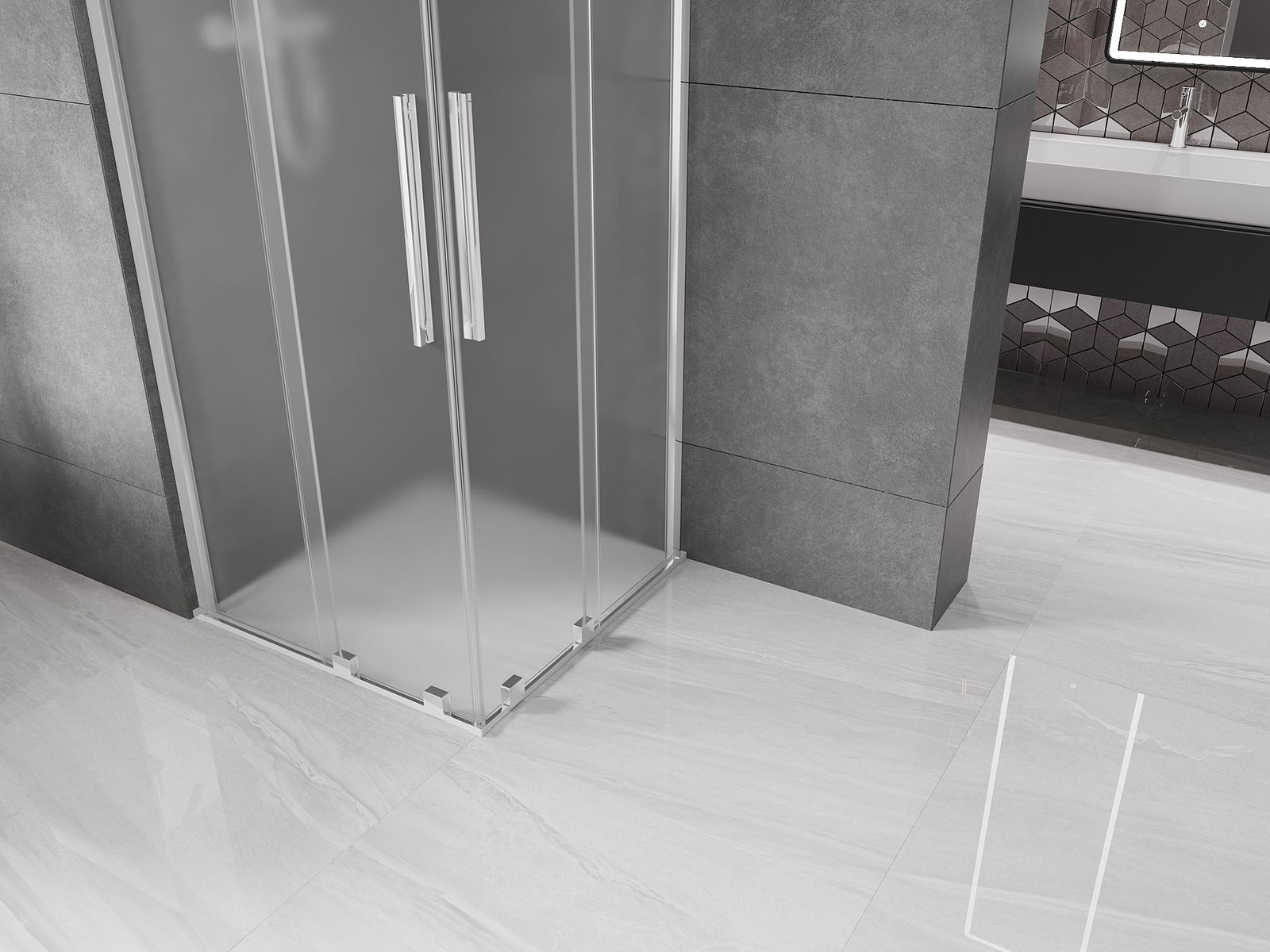 Mexen Velar Duo drsna tuš kabina 90 x 90 cm, mat, krom - 871-090-090-32-01