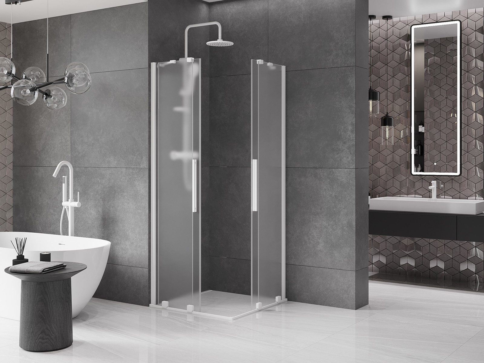 Mexen Velar Duo drsna tuš kabina 100 x 100 cm, mraz, bela - 871-100-100-32-20