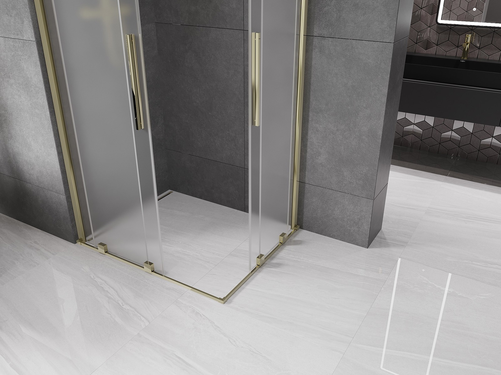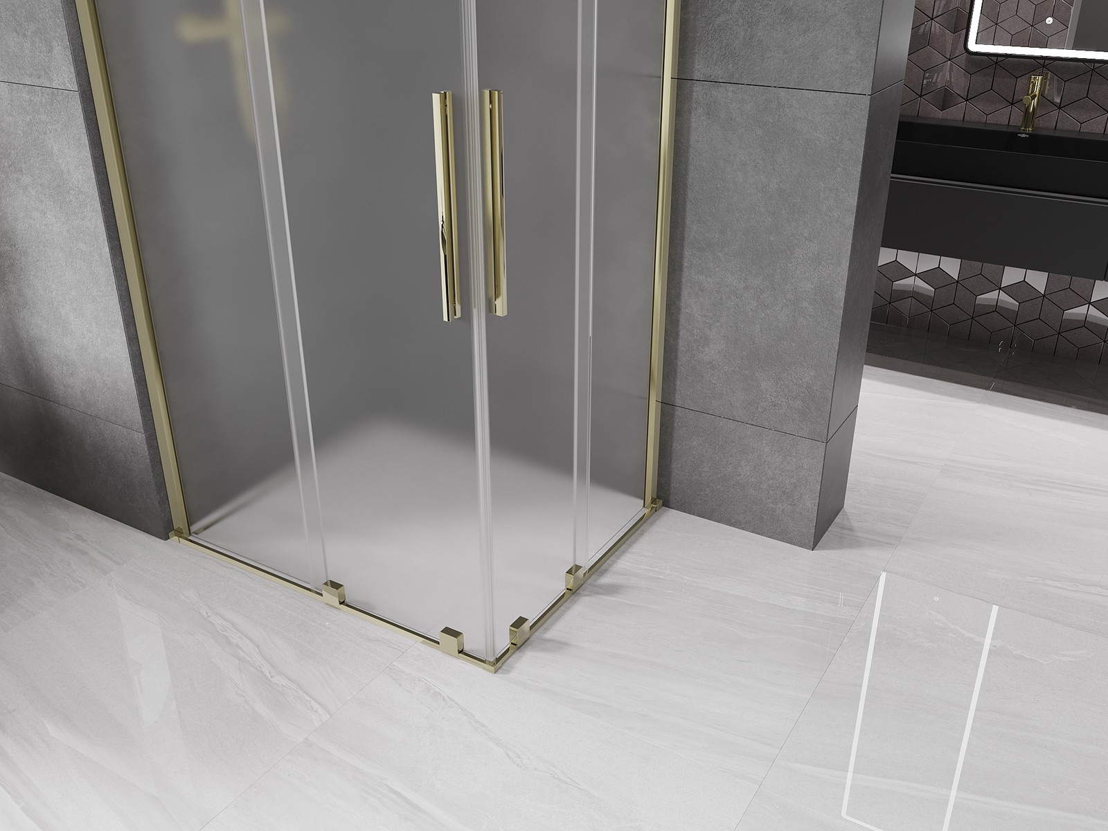 Mexen Velar Duo drsna tuš kabina 90 x 80 cm, matirana, zlata - 871-090-080-32-50