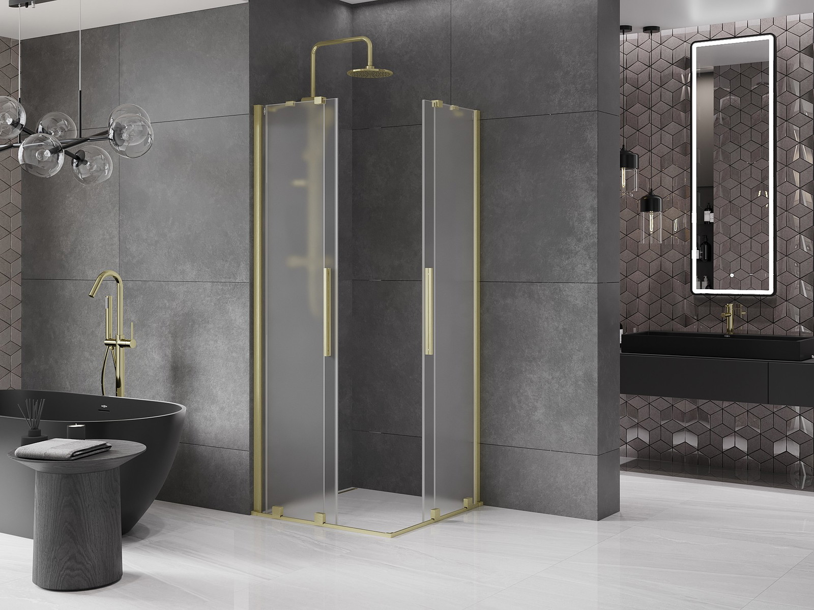 Mexen Velar Dvojna drsna tuš kabina 80 x 80 cm, mat, zlata brušena - 871-080-080-32-55