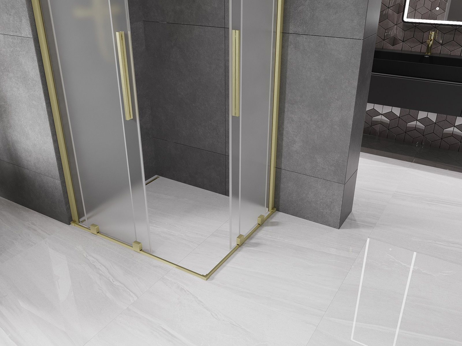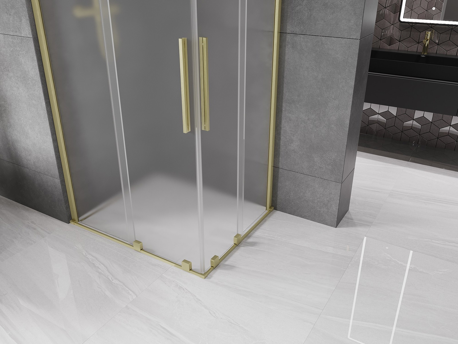 Mexen Velar Duo drsna pršna kabina 90 x 80 cm, matirano, zlato krtačeno - 871-090-080-32-55