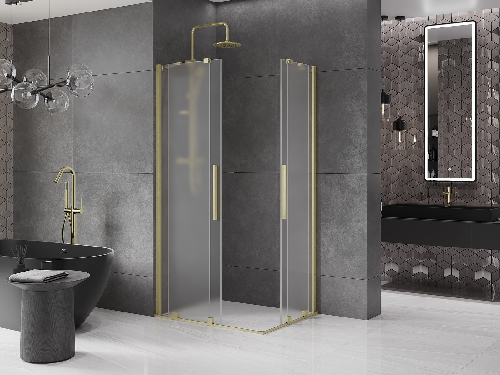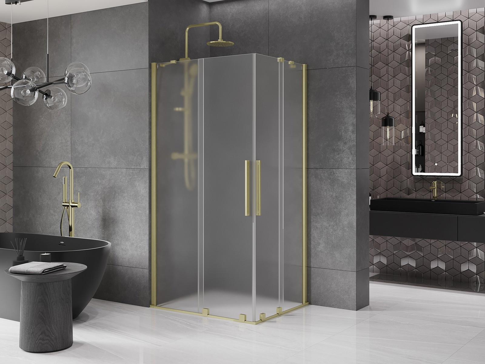 Mexen Velar Duo je drsna pršna kabina z dimenzijami 90x80 cm, ki navdušuje ne samo z zlatim krtačenim zaključkom, temveč tudi s praktičnimi rešitvami. Opremljena z univerzalnim sistemom montaže, se prilega tako kadi kot ploščicam. Matirano, kaljeno steklo debeline 8 mm zagotavlja varnost, aluminijast profil in prevleka za lažje čiščenje pa dodatno povečujeta udobje uporabe. Zaradi prilagoditve širine in izravnave neravnin sten, se kabina prilagodi vsaki kopalnici.