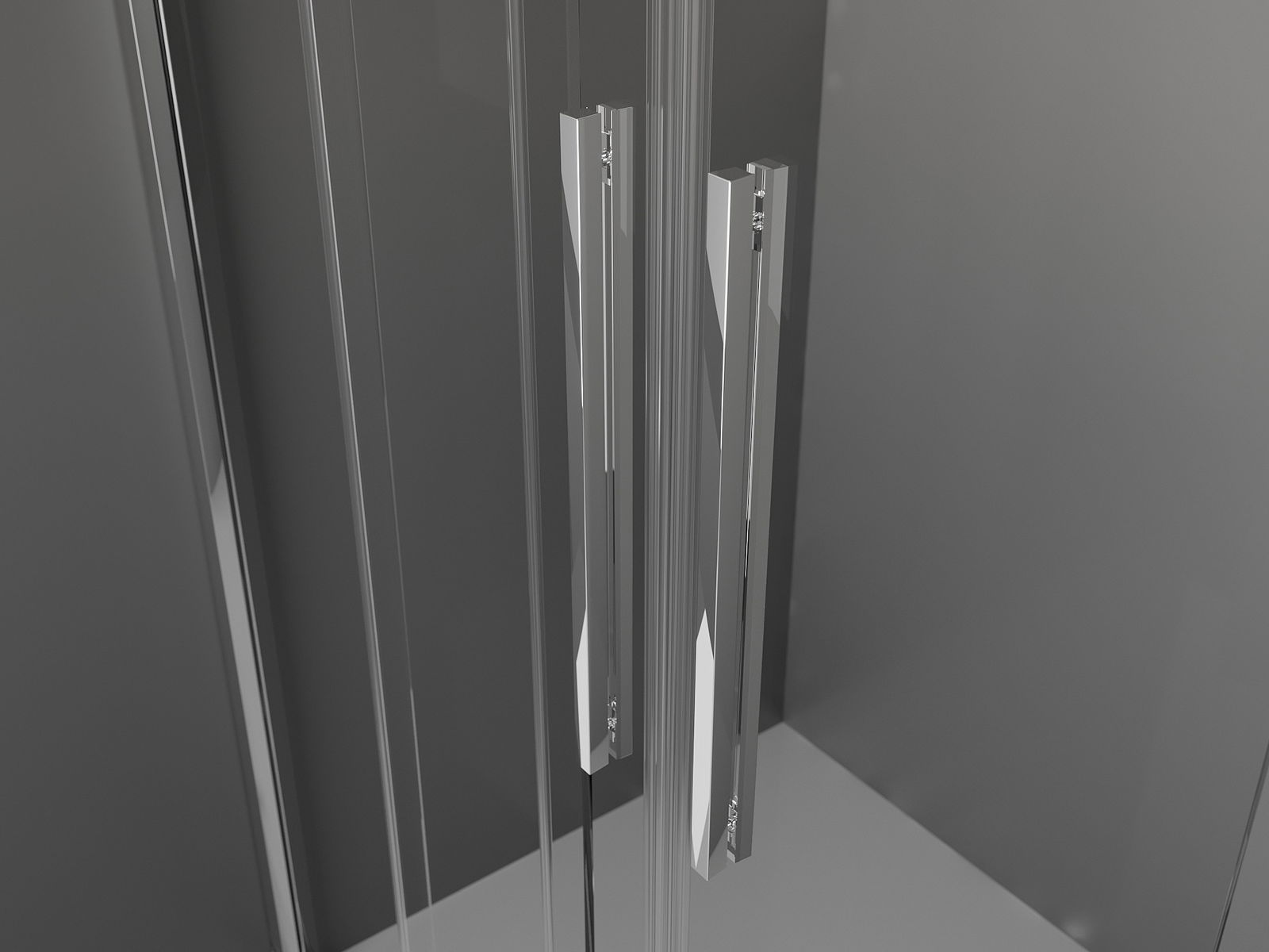 Priročen in udoben ročaj je izdelan iz nerjavečega jekla. Modna oblika v kombinaciji s končno obdelavo, ki ustreza barvi profilov, daje celoti moderen in stiliziran videz ter poudarja estetiko vsake kopalnice.