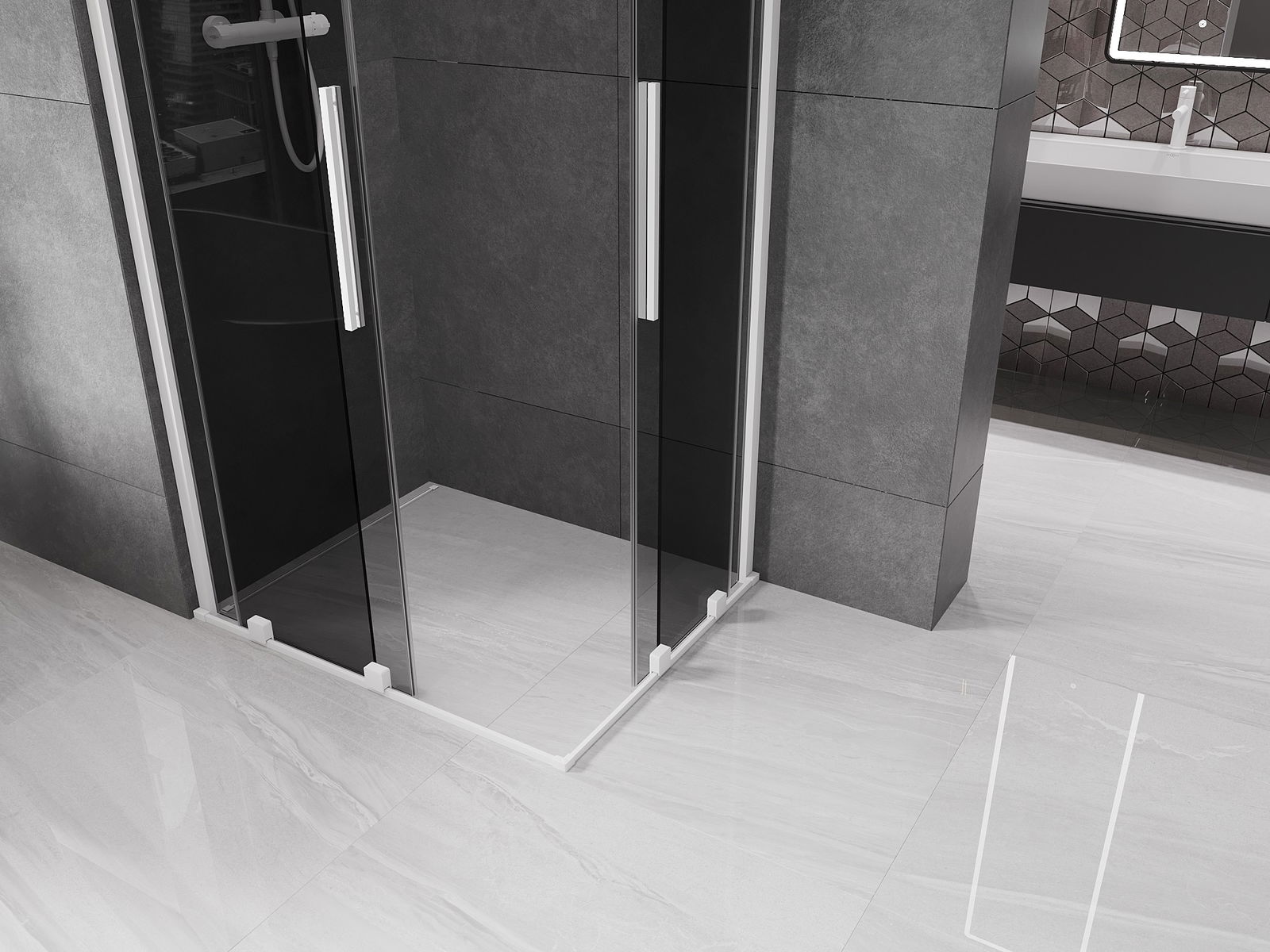 Mexen Velar Duo drsna pršna kabina 100 x 90 cm, grafit, bela - 871-100-090-42-20