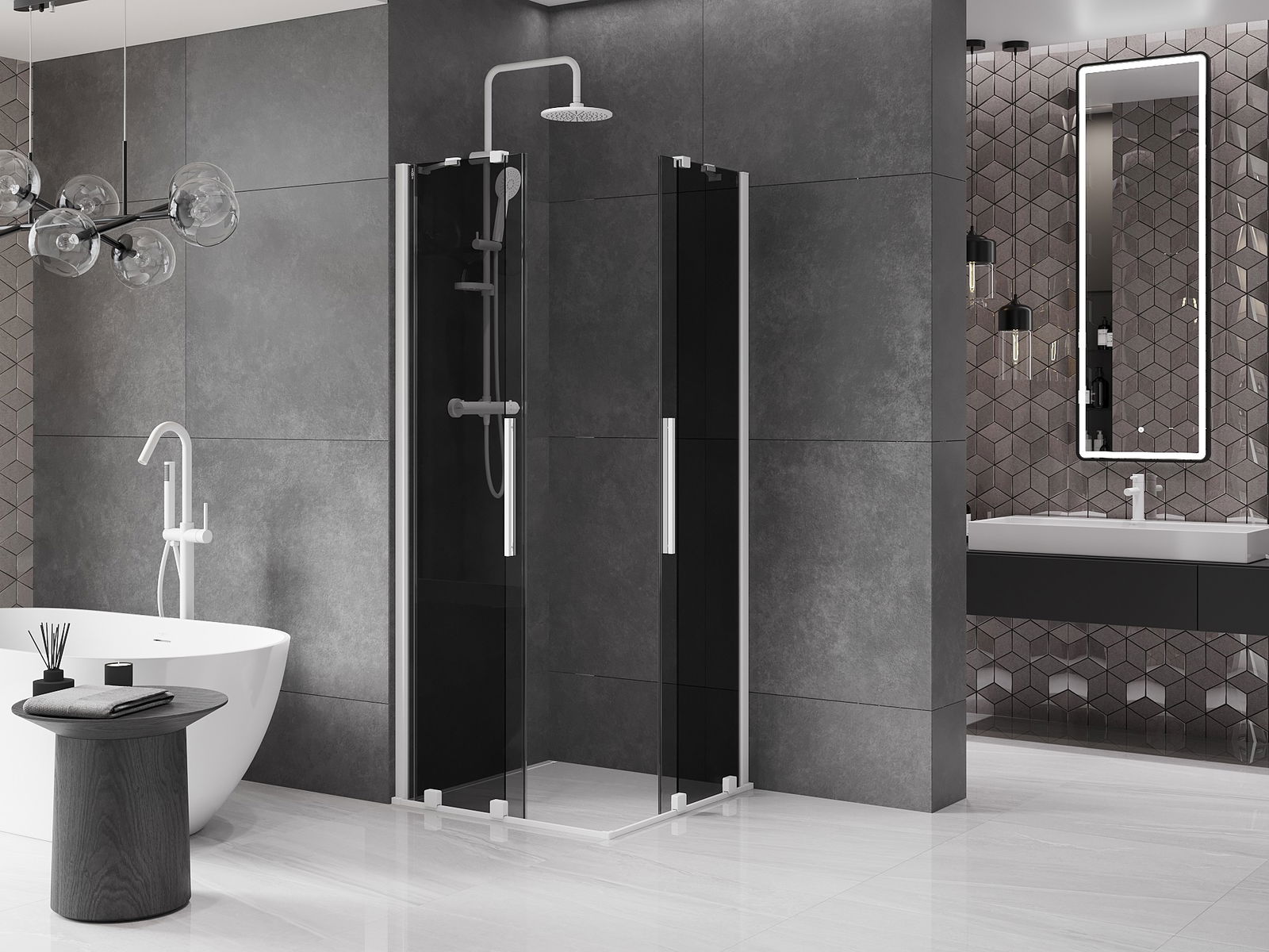 Mexen Velar Duo drsna pršna kabina 100 x 100 cm, grafit, bela - 871-100-100-42-20