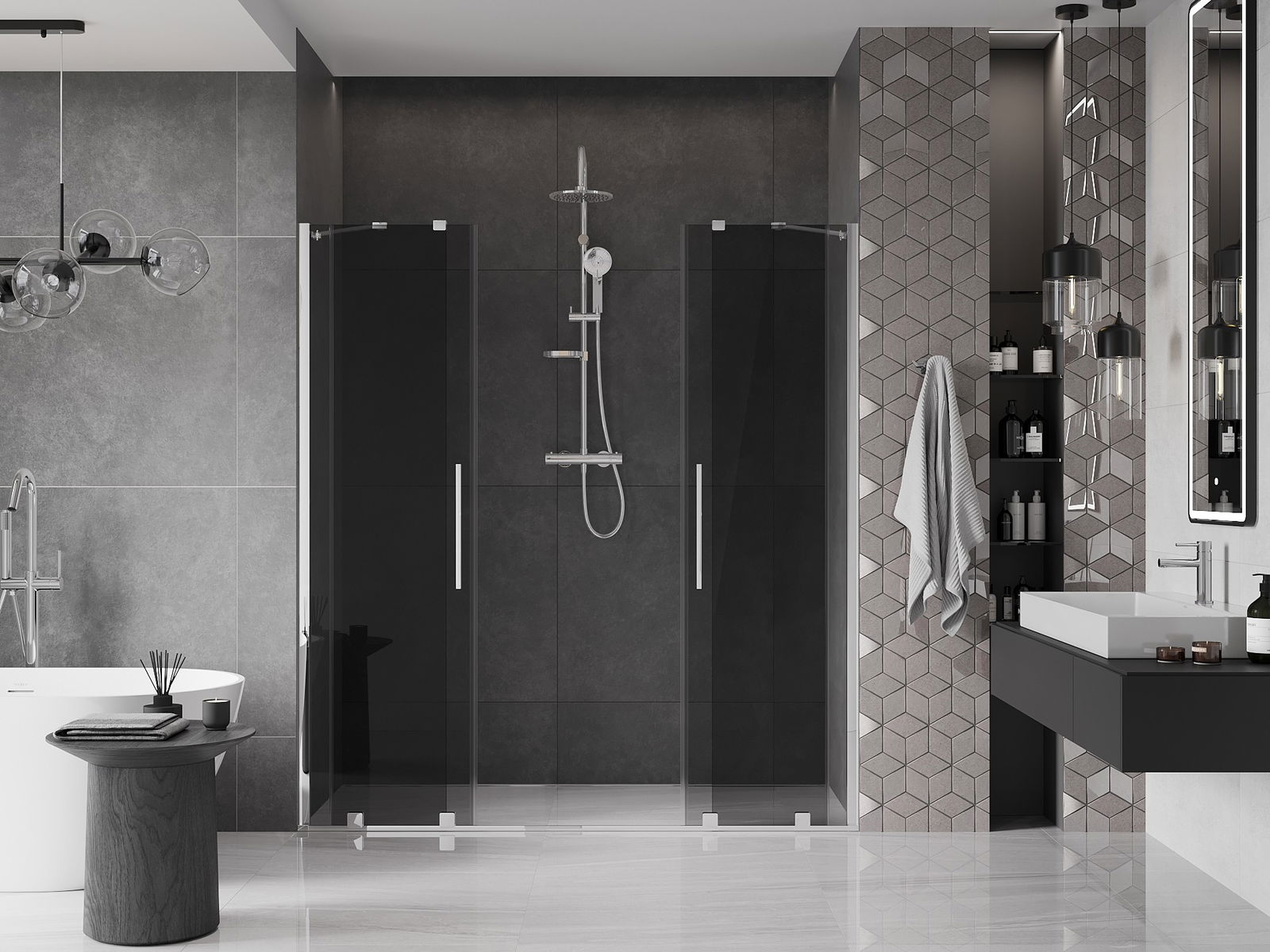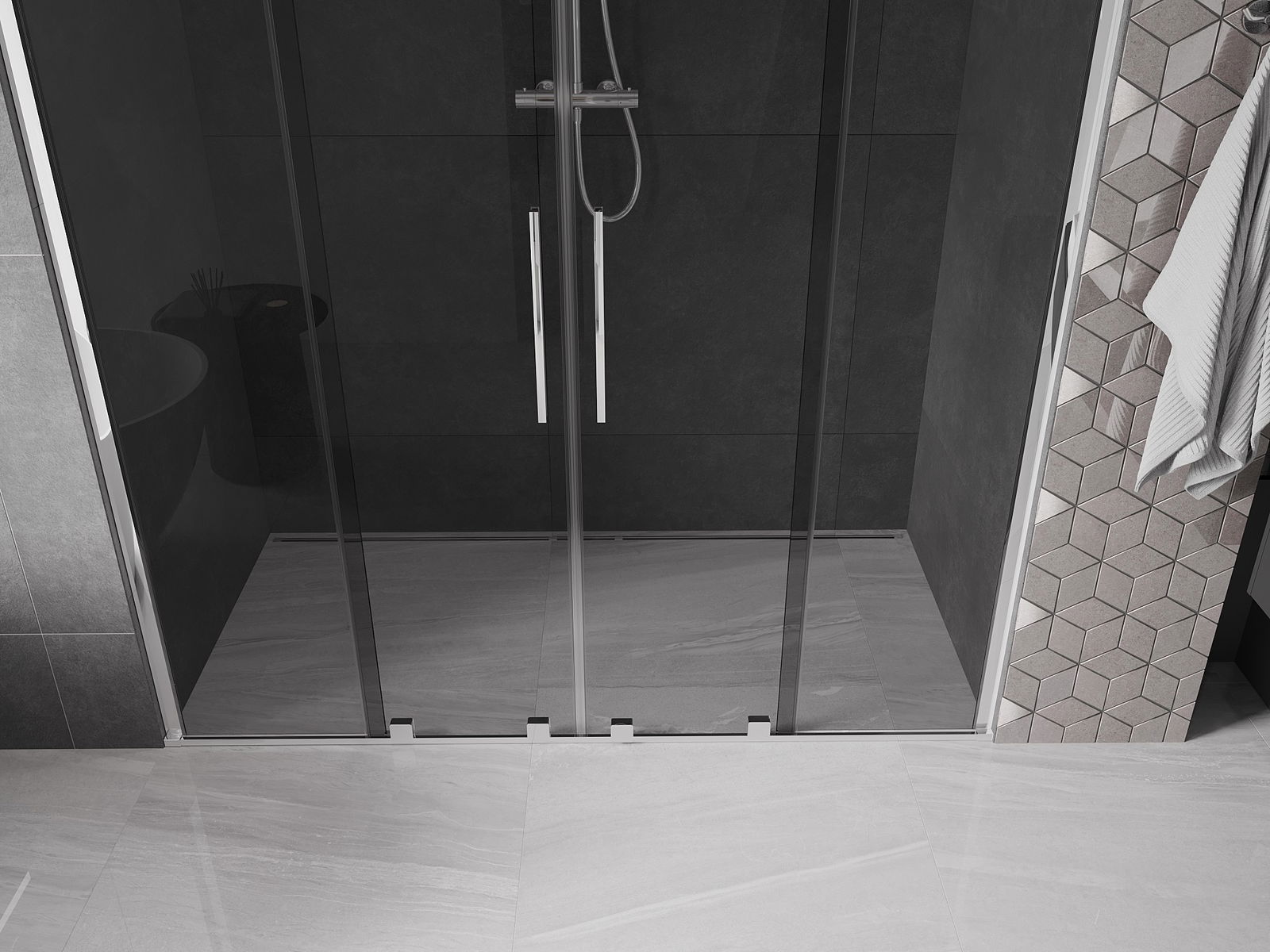 Mexen Velar Duo drsna vrata za prho 200 cm, grafit, krom - 871-200-000-42-01