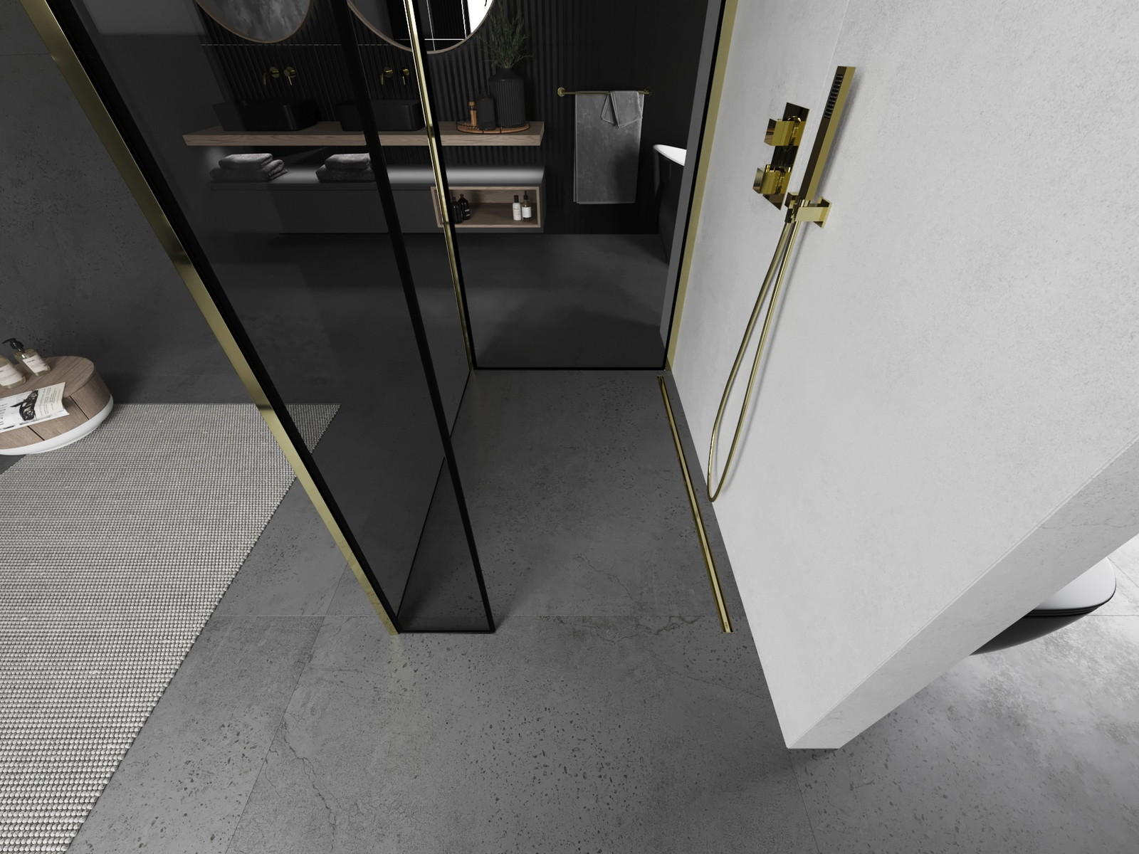 Mexen Kioto Tuš stena Walk-in 130 x 120 x 30 cm, črn okvir, zlata - 800-130-120-221-50-70-030