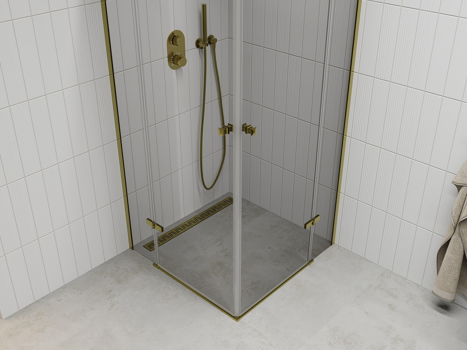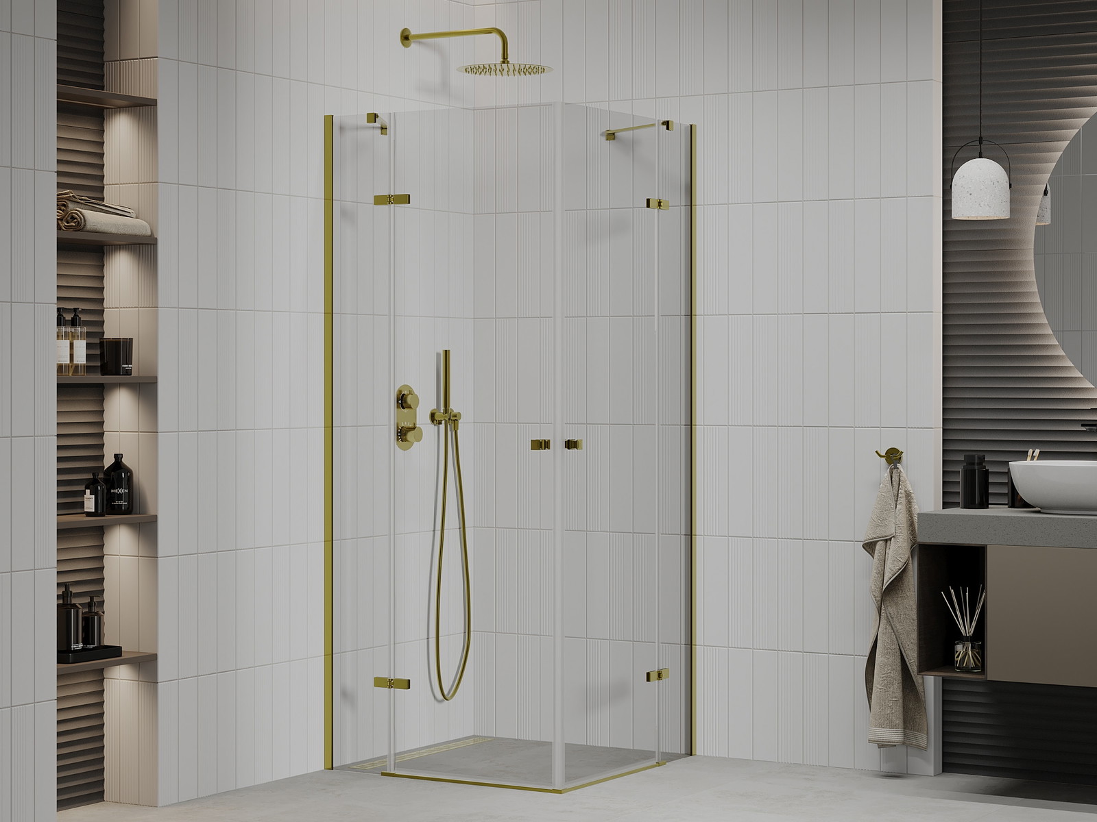 Mexen Roma Duo kabina za prhanje s tečajnimi vrati 80 x 80 cm, prozorna, zlata - 854-080-080-50-00-02